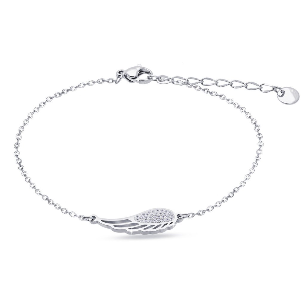 - Náramek z chirurgické oceli s pevným přívěskem, andělské křídlo se zirkony