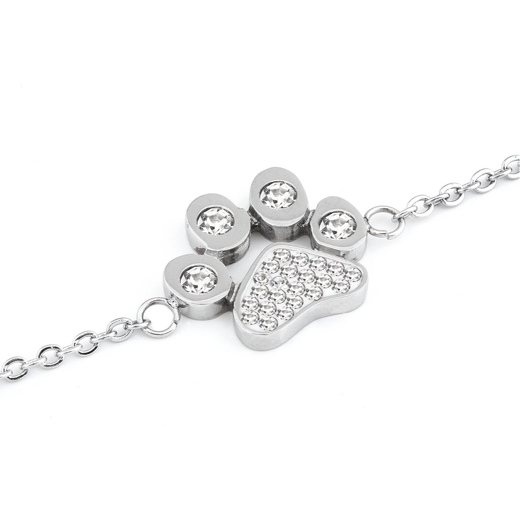 Náramek z chirurgické oceli s pevným přívěskem, tlapka se zirkony