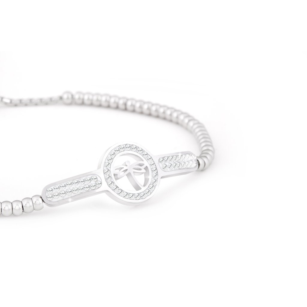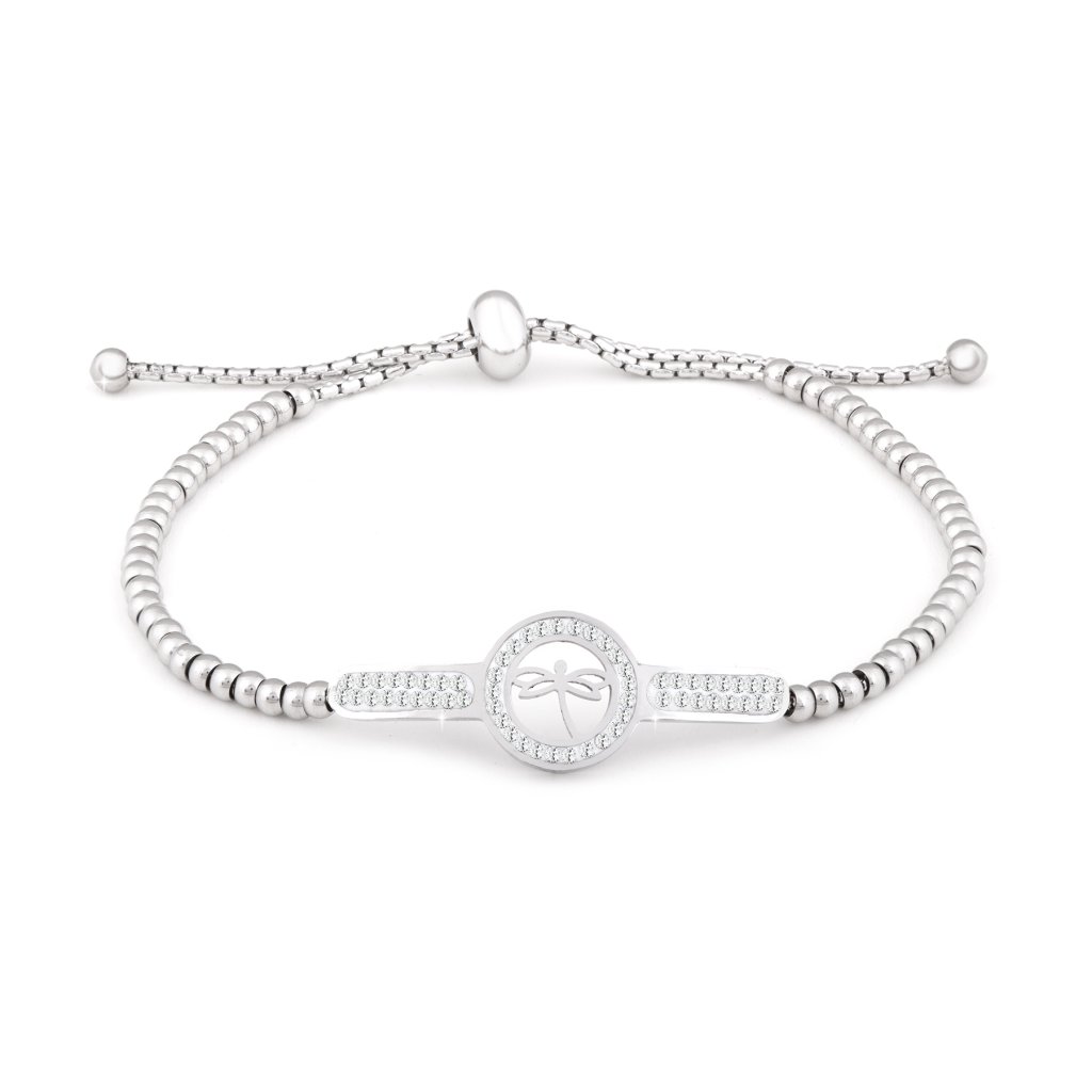 Náramek z chirurgické oceli s posuvnou kuličkou, vážka ozdobená zirkony 2001963