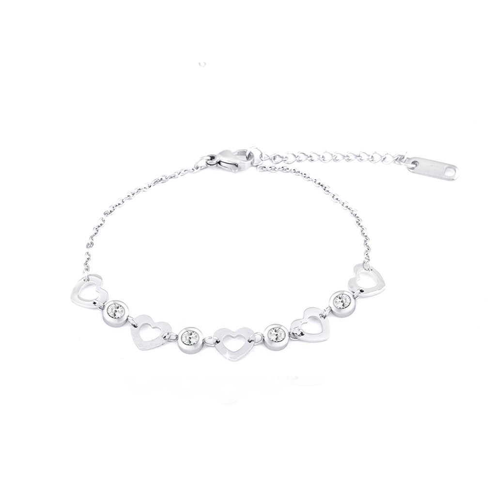 Náramek z chirurgické oceli srdíčka a zirkony obvod zapnutí je 19,5 cm
