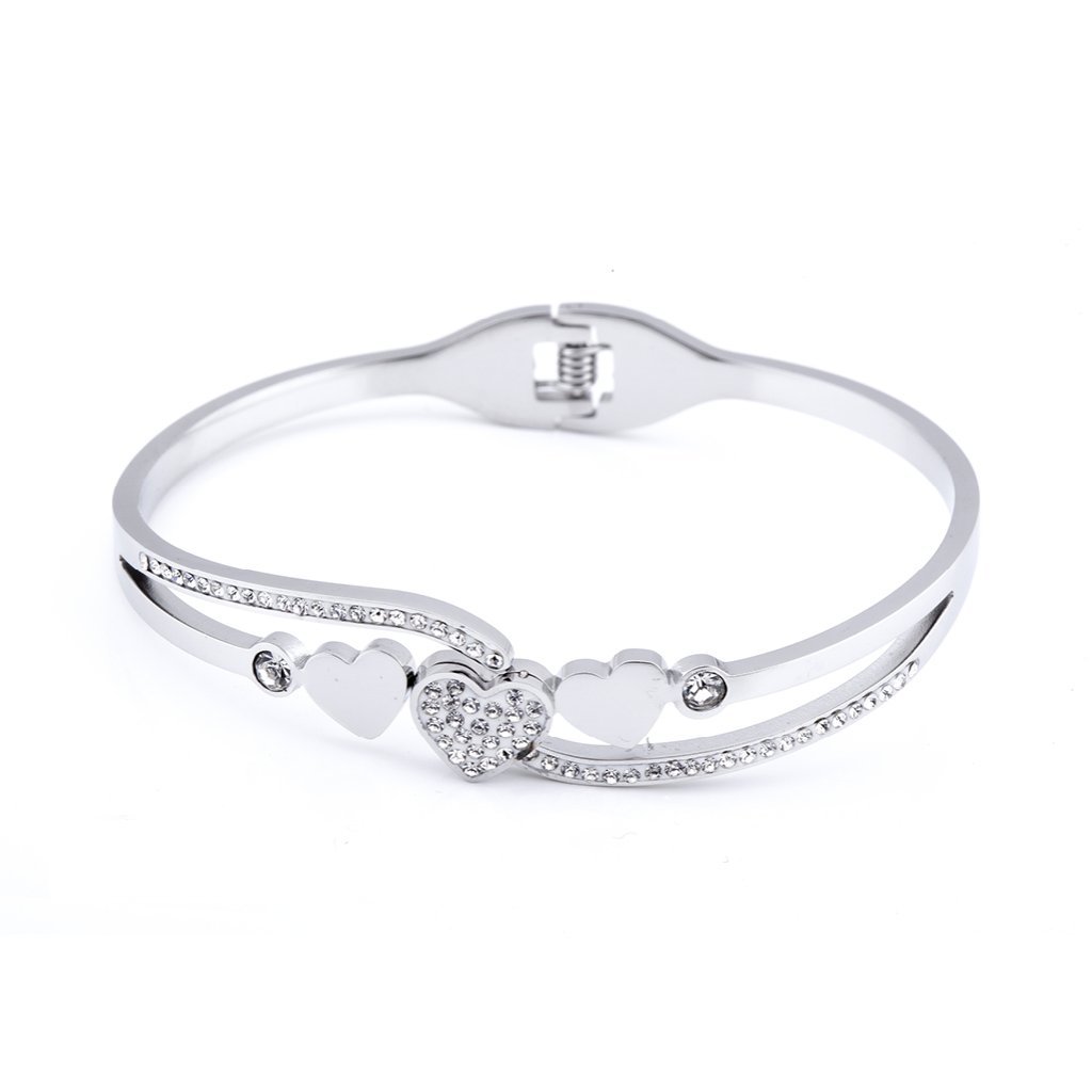 Náramek z chirurgické oceli srdíčka se zirkony 2001670