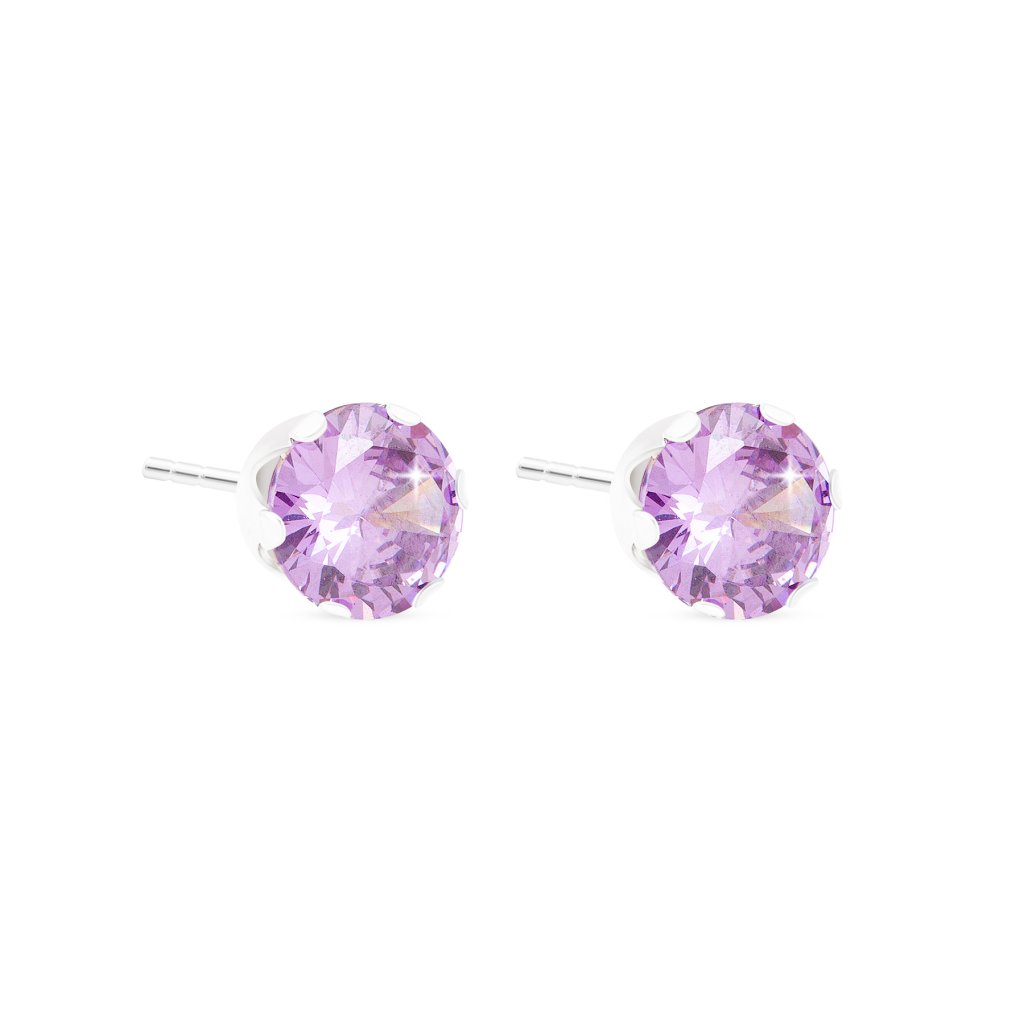Náušnice z chirurgické oceli se světle fialovým zirkonem.
