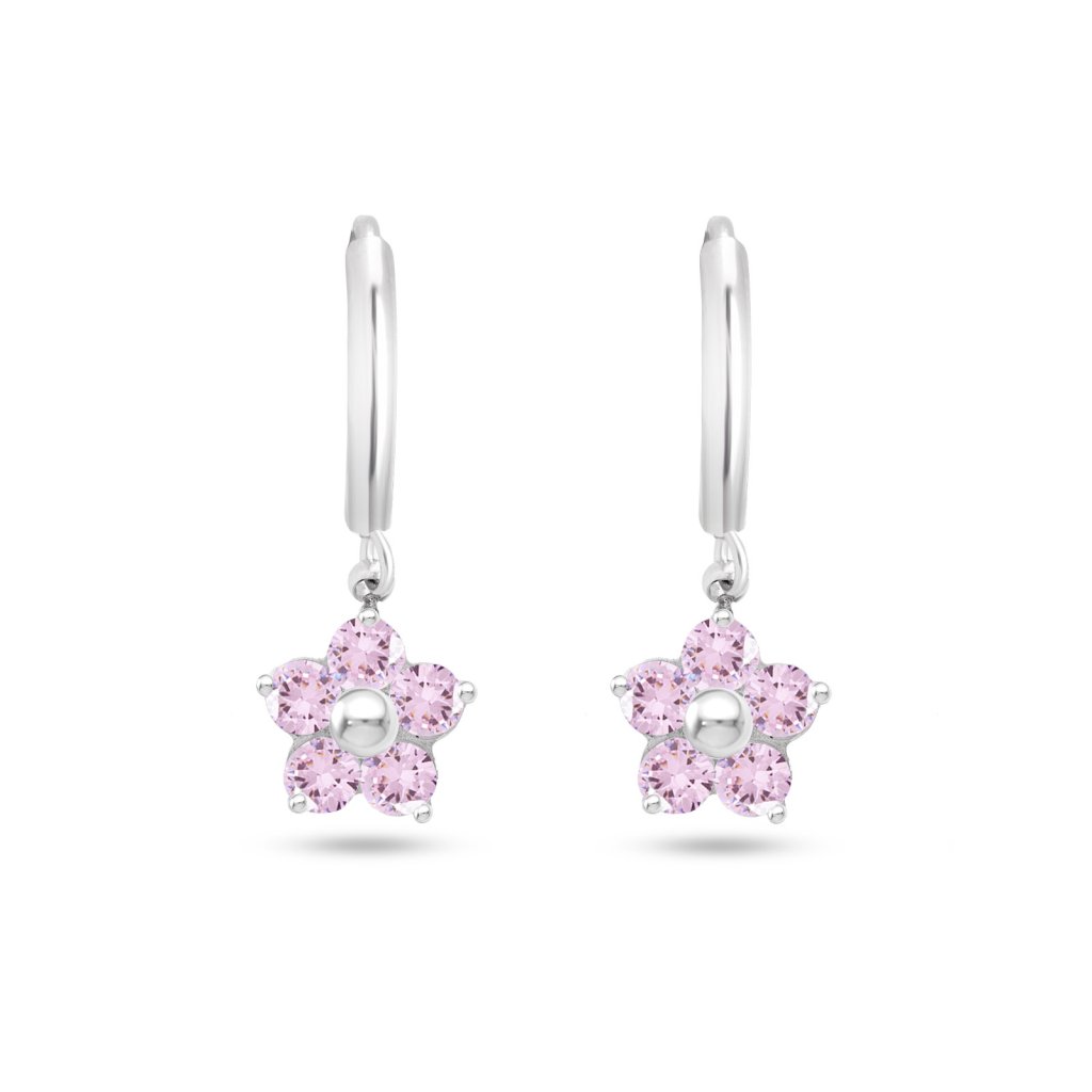 Náušnice z chirurgické oceli kroužek, visací květina s růžovými zirkony 1002706-1