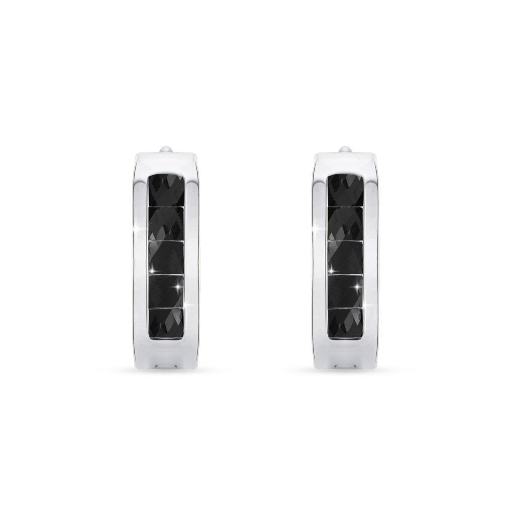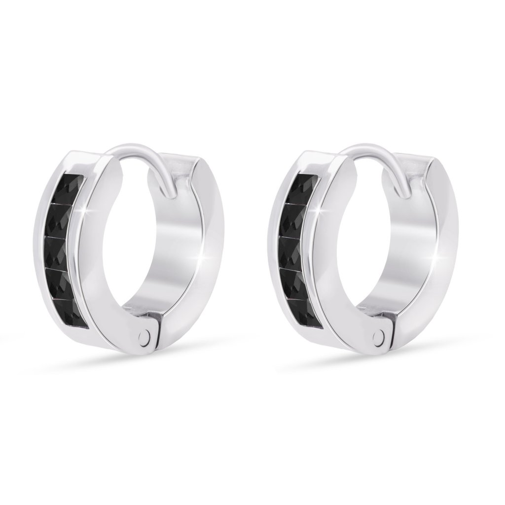 Náušnice z chirurgické oceli, kroužek ozdobený černými zirkony 1002941-3