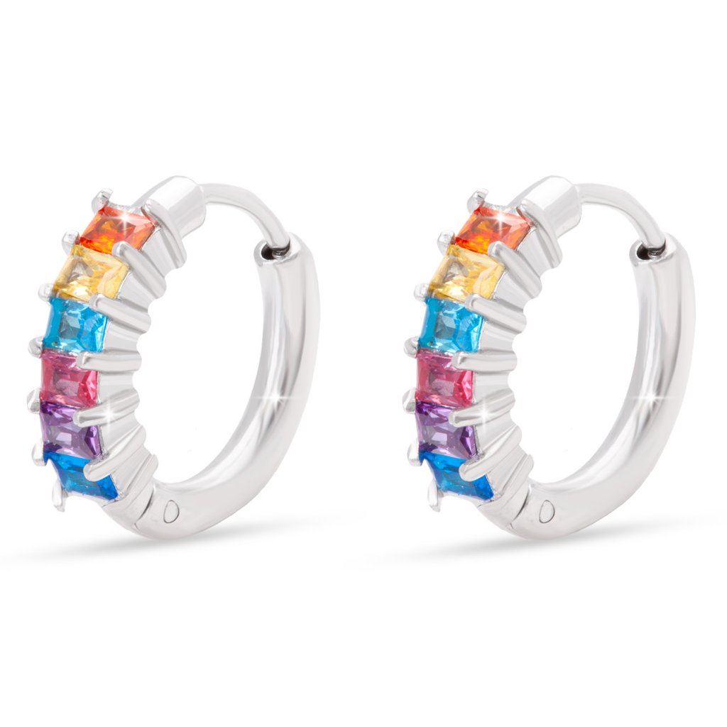 Náušnice z chirurgické oceli, kroužek vykládaný barevnými zirkony 1002940