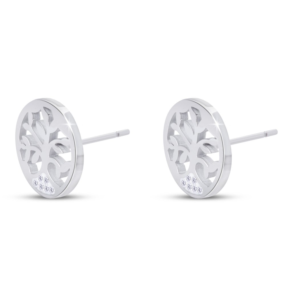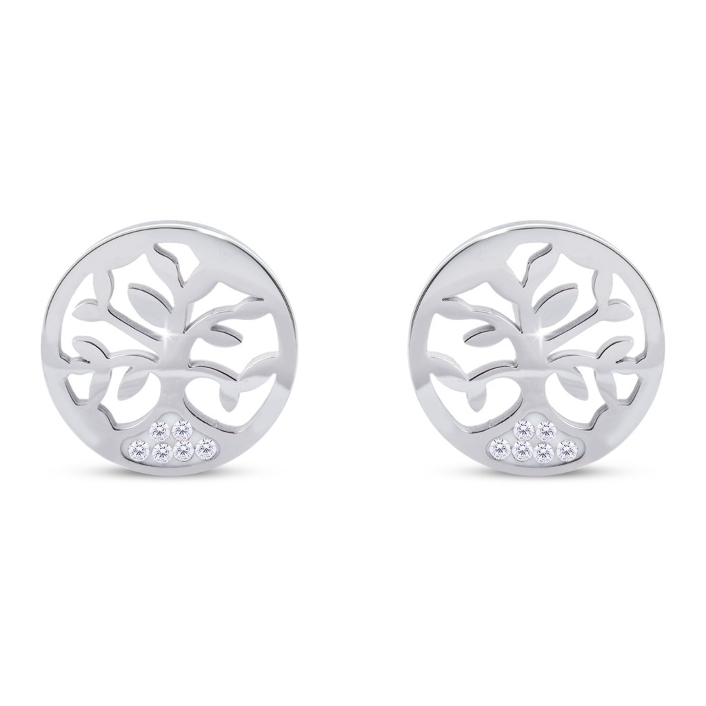 Náušnice z chirurgické oceli pecky, lesklý strom života v kruhu se zirkony 1002924