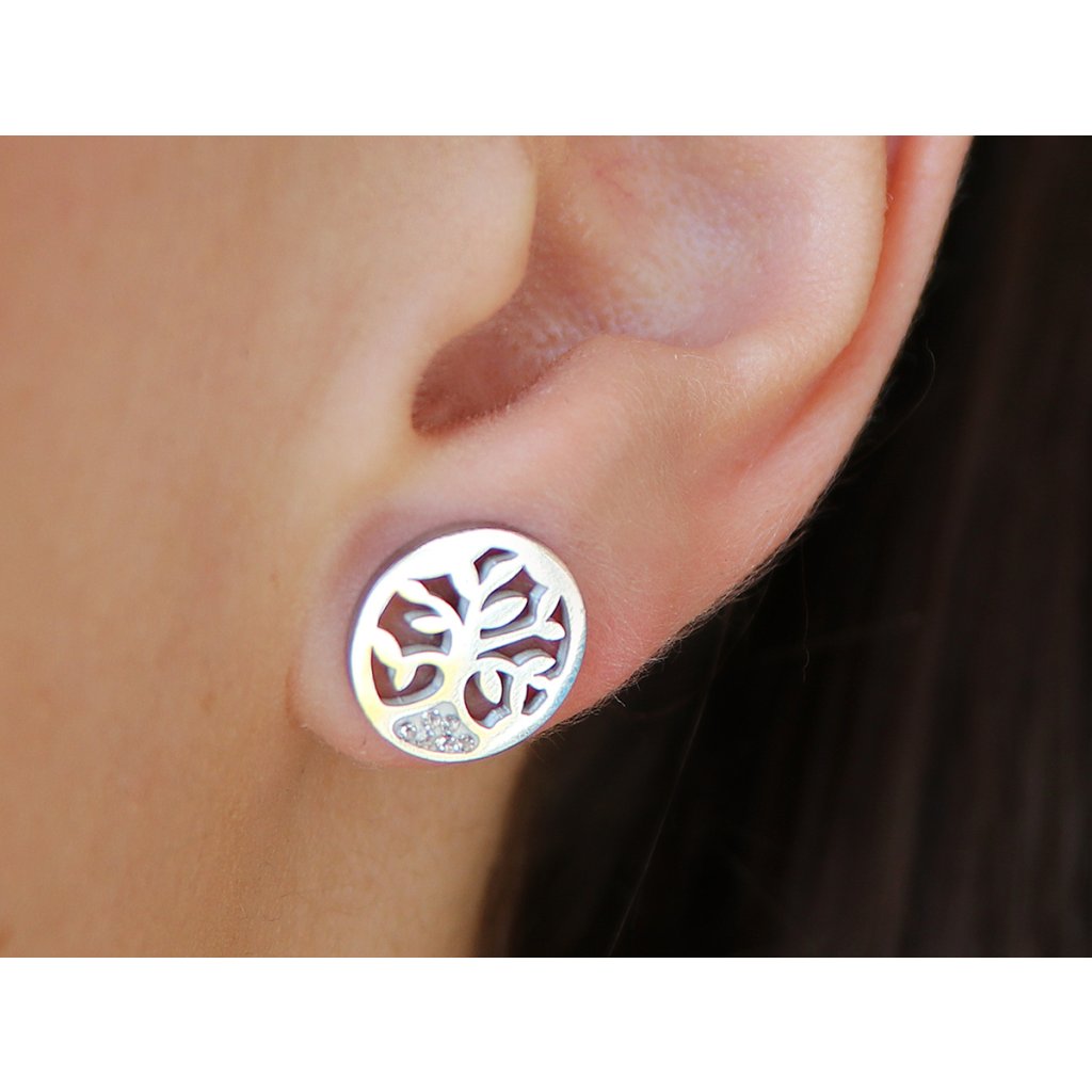 - Náušnice z chirurgické oceli pecky, lesklý strom života v kruhu se zirkony.