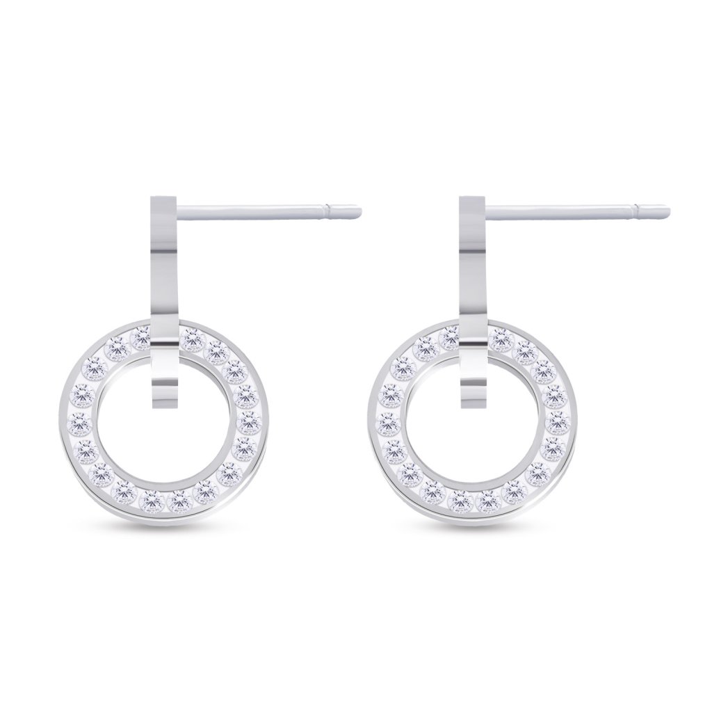 Náušnice z chirurgické oceli - pecky, visací kruhy s čirými zirkony 1002936