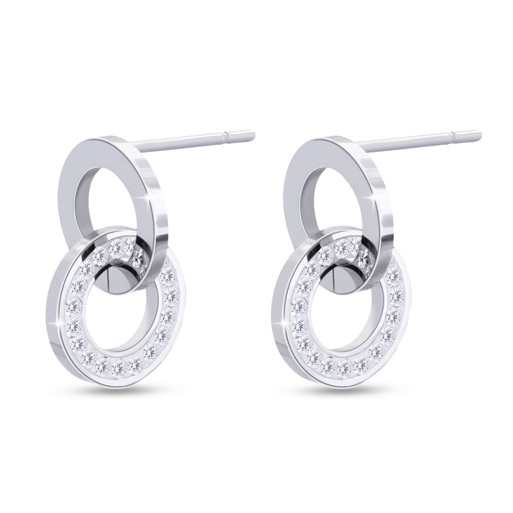 - Náušnice z chirurgické oceli - pecky, visací kruhy s čirými zirkony.