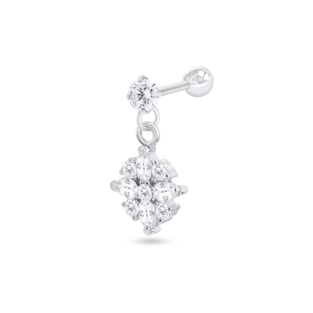- Představujeme vám náušnice na jedno ucho z chirurgické oceli s visací květinou a kubickými zirkony.