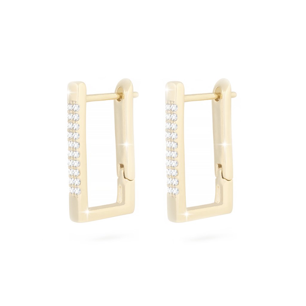 Náušnice jsou kroužkového typu ve tvaru hranatém se zirkony.
