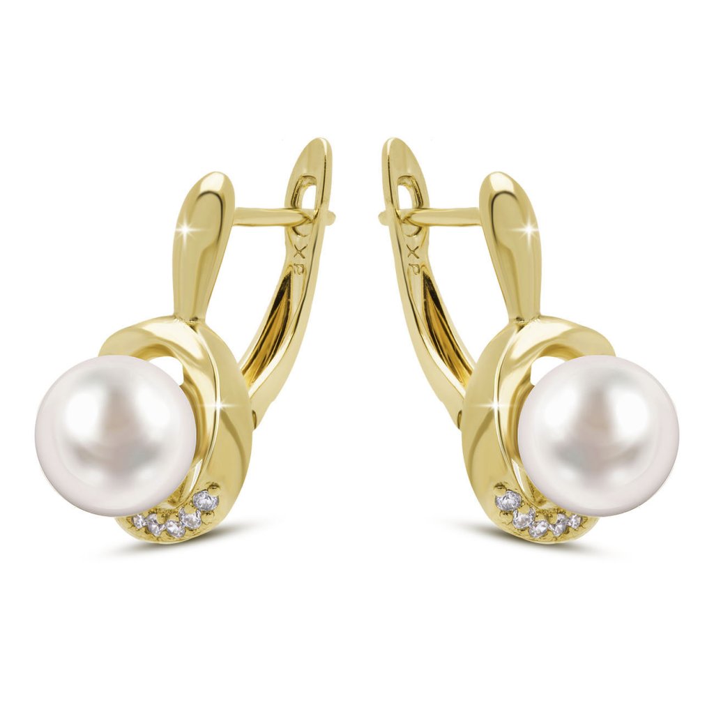 PARIS 3371 Náušnice pozlacené 14k s perlou a zirkony Ellami