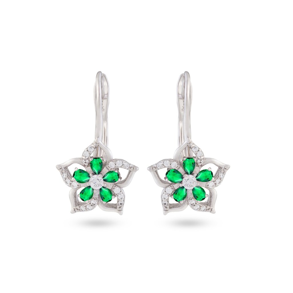 Náušnice rhódiované, visací květiny se zelenými zirkony 1002343-1