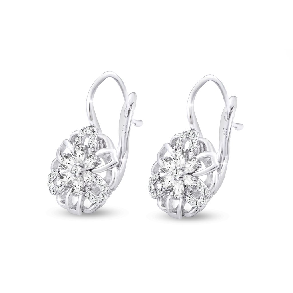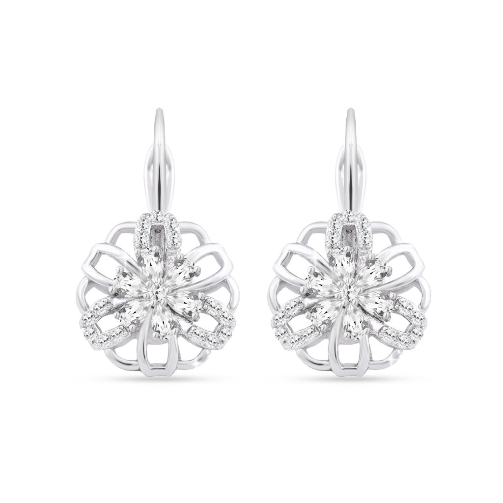 Náušnice rhódiované, visací ve tvaru květiny se zirkony 1002370