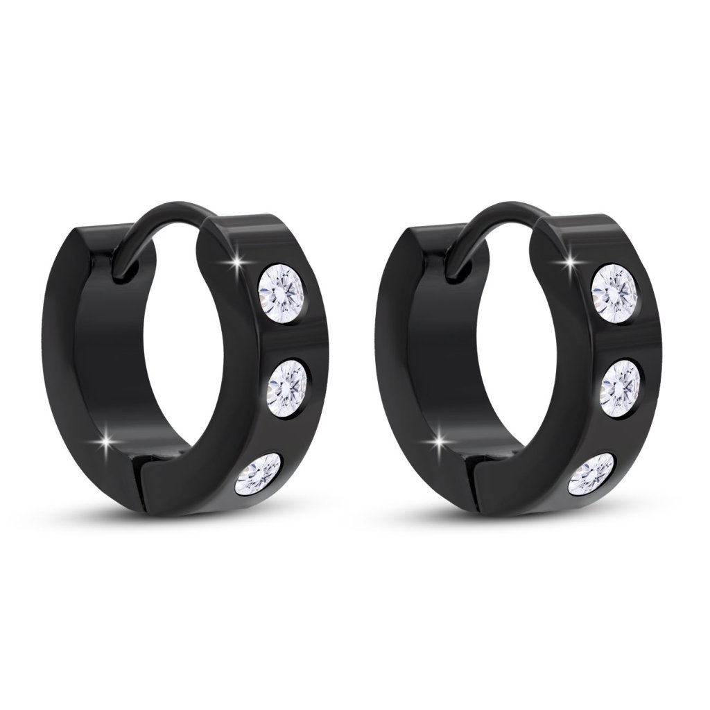 Náušnice z chirurgické oceli, černý kroužek se zirkony 1003296