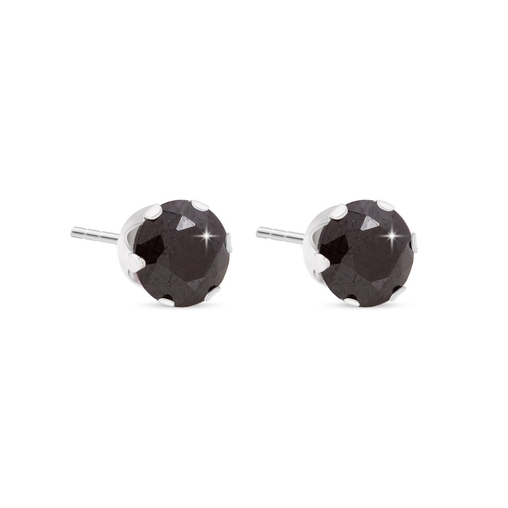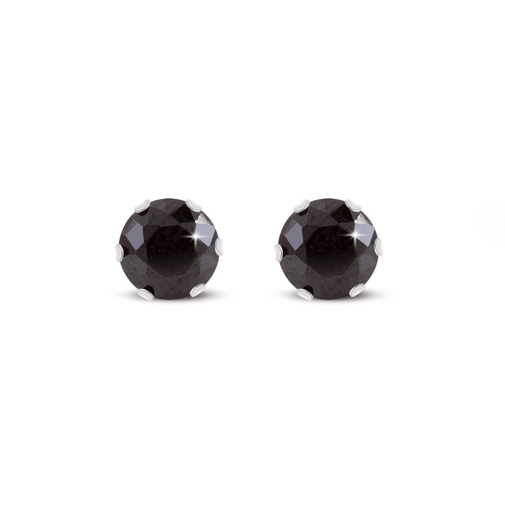 Náušnice z chirurgické oceli s černým zirkonem.