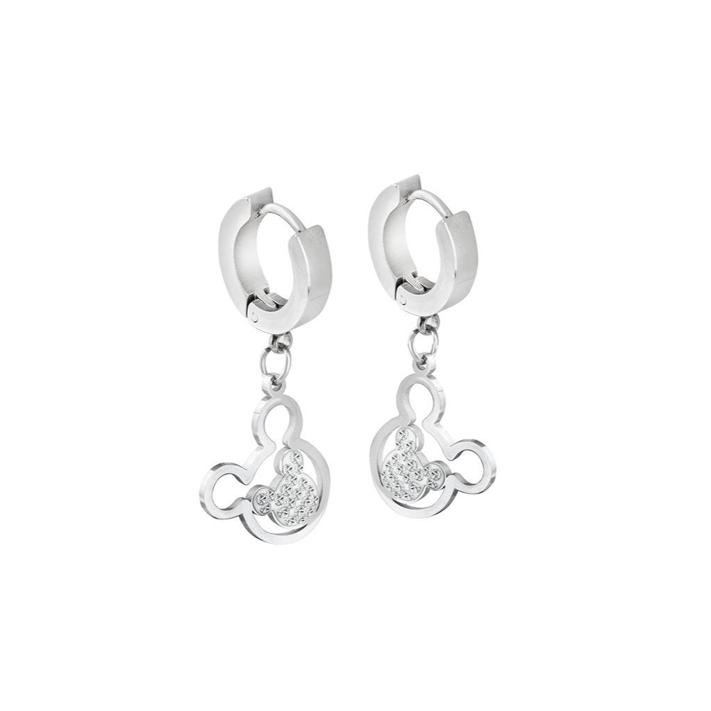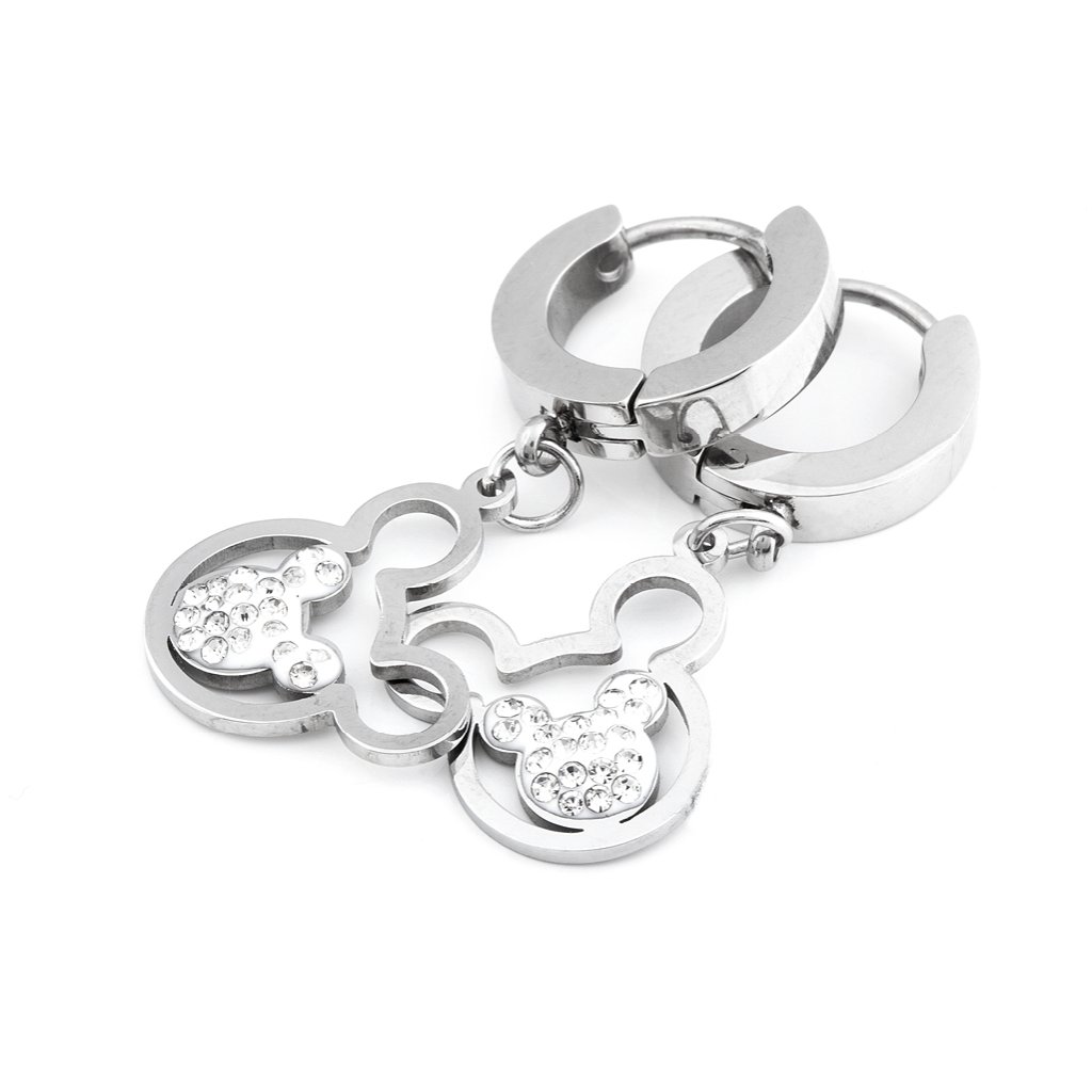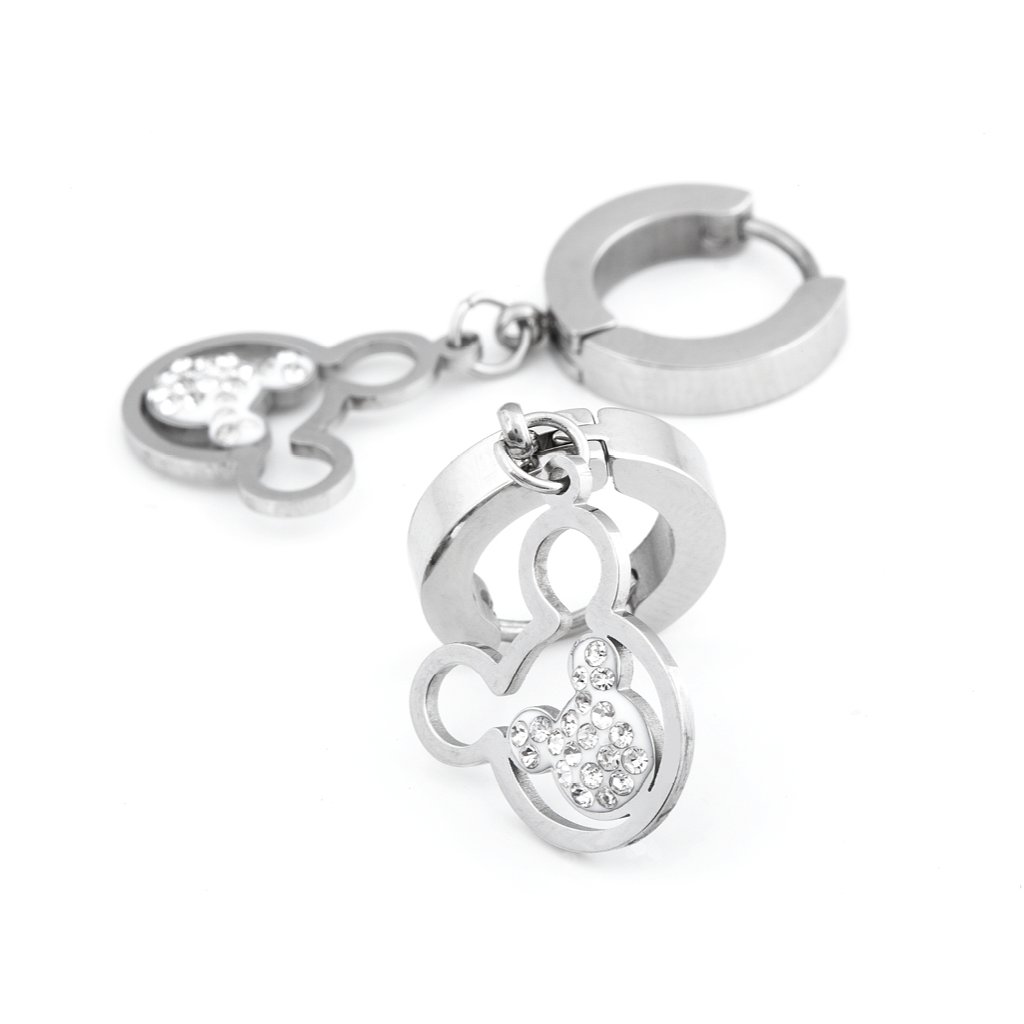 Náušnice z chirurgické oceli, kroužek- hlava Mickey se zirkony