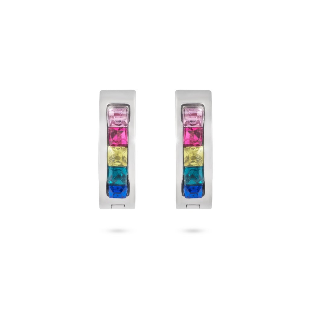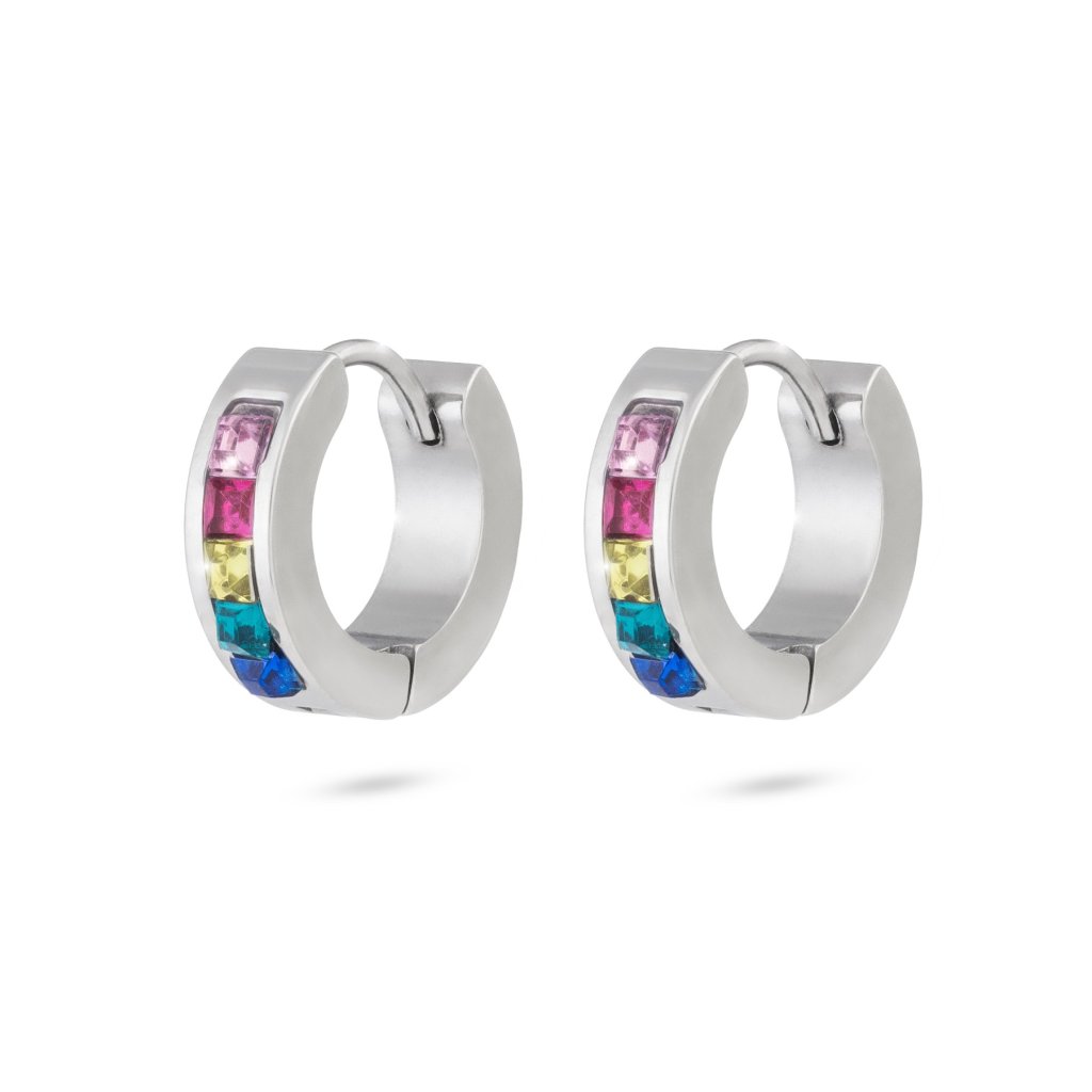 Náušnice z chirurgické oceli, kroužek s barevnými zirkony 1002393
