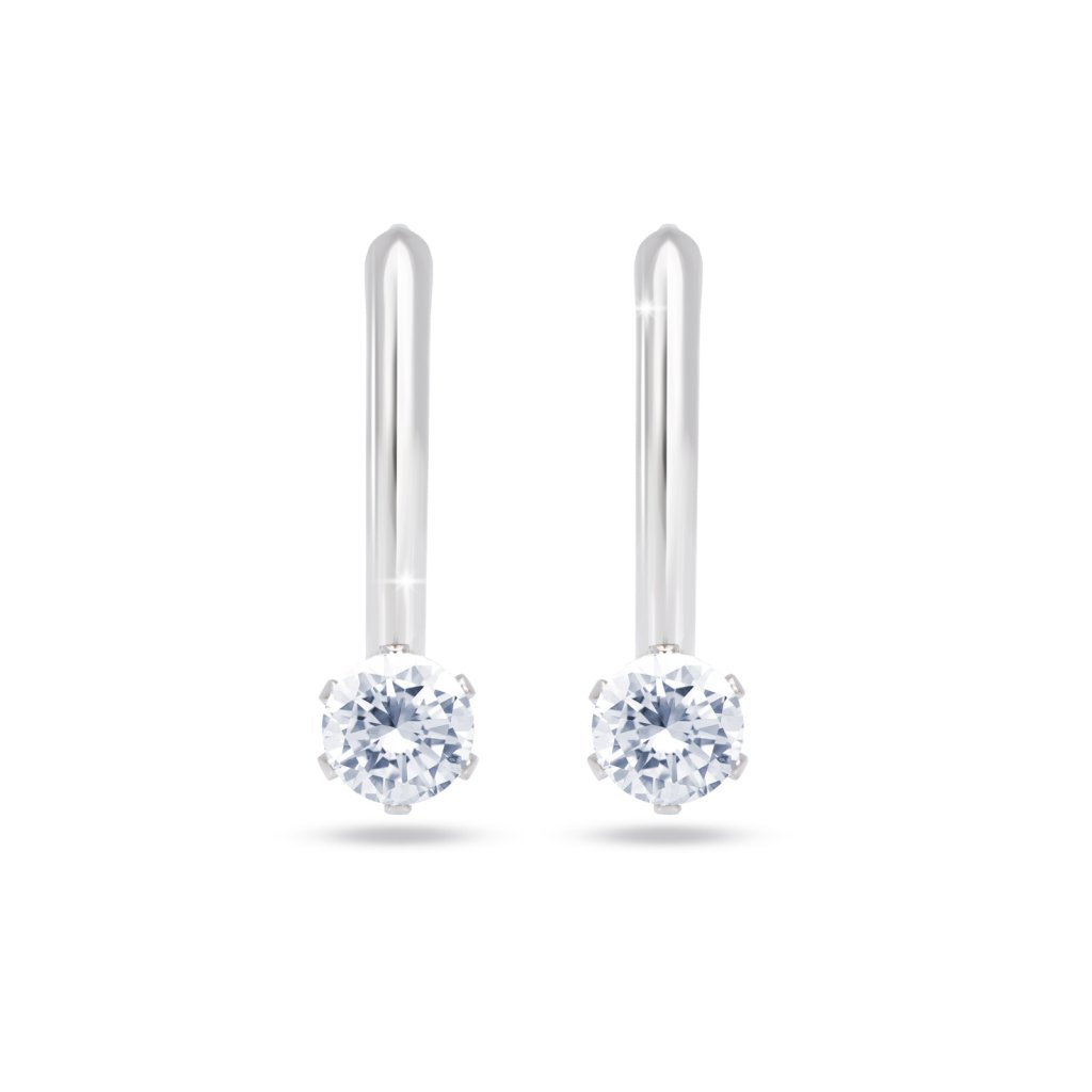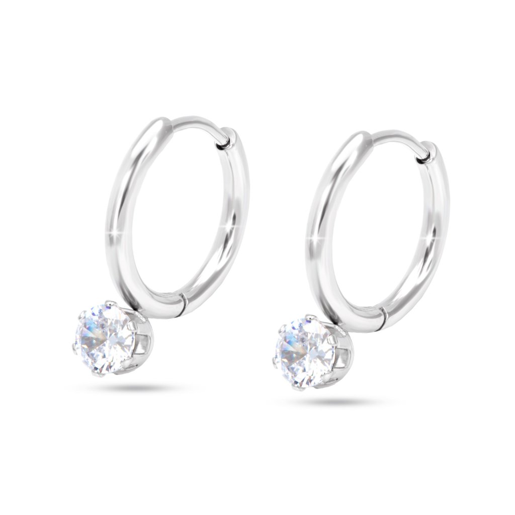 Náušnice z chirurgické oceli, kruh ozdobený čirým zirkonem. Náušnice jsou elegantní ozdobou pro všední dny.