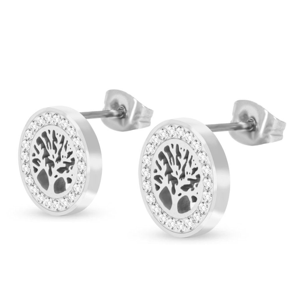 Náušnice z chirurgické oceli, kruh se stromem života a zirkony 1002555