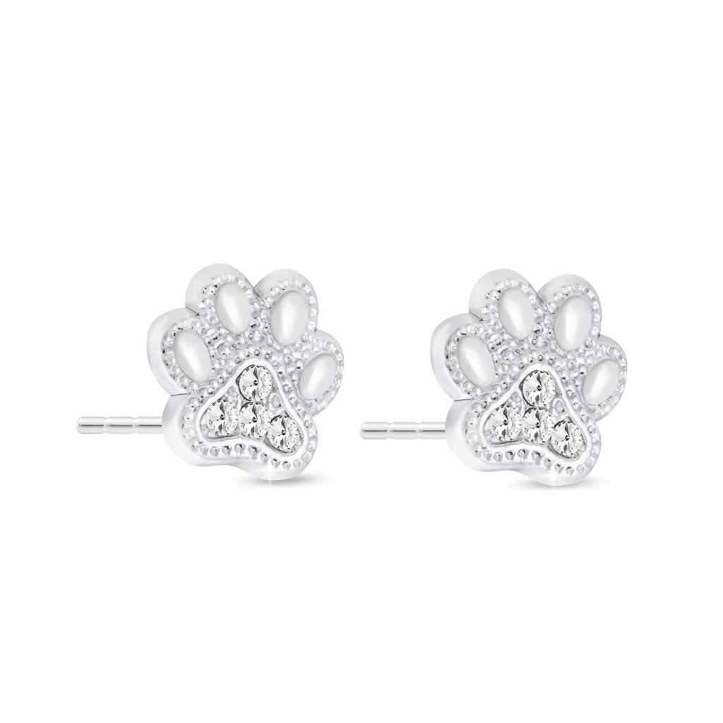 Náušnice jsou osazeny zirkonem, ve tvaru psí tlapky s puzetkovým zapínáním.
