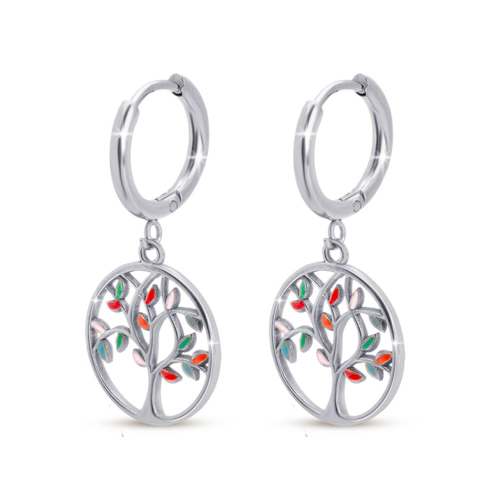 Náušnice z chirurgické oceli, strom s barevnými zirkony 1003327