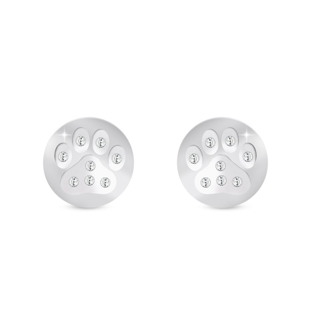 Náušnice jsou osazeny zirkonem, ve tvaru kruhu s psí tlapkou, puzetkovým zapínáním.