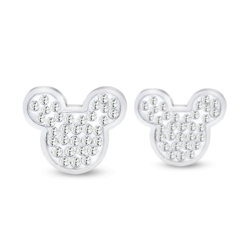 Náušnice z chirurgické oceli, ve tvaru Mickey Mouse se zirkony.