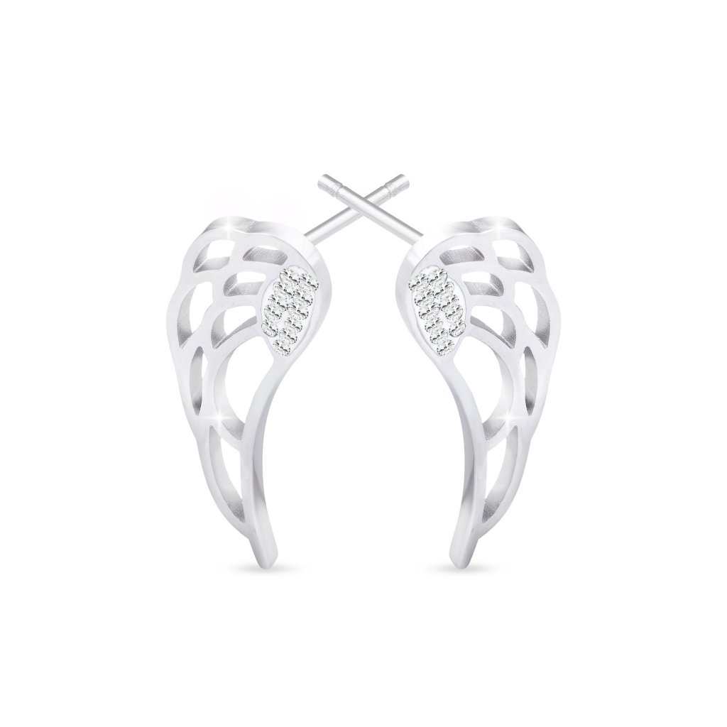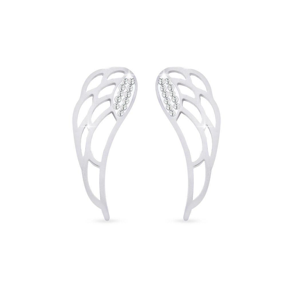 Náušnice z nerezové oceli Andělská křídla jsou elegantní ozdobou pro všední i slavnostní den. Jsou zdobené čirým zirkonem nádherně se lesknou. Mají kvalitní zpracování z nerezové oceli. Jejich povrch se třpytí, což jim propůjčuje velice elegantní vzhled.Tento výrobek neobsahuje těžké kovy.