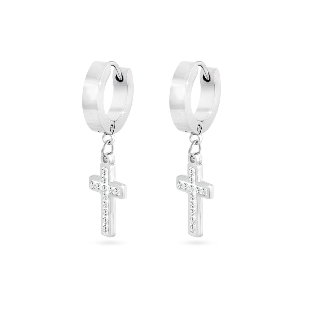 Náušnice z chirurgické oceli, visací křížek ozdobený zirkony 1001920-1