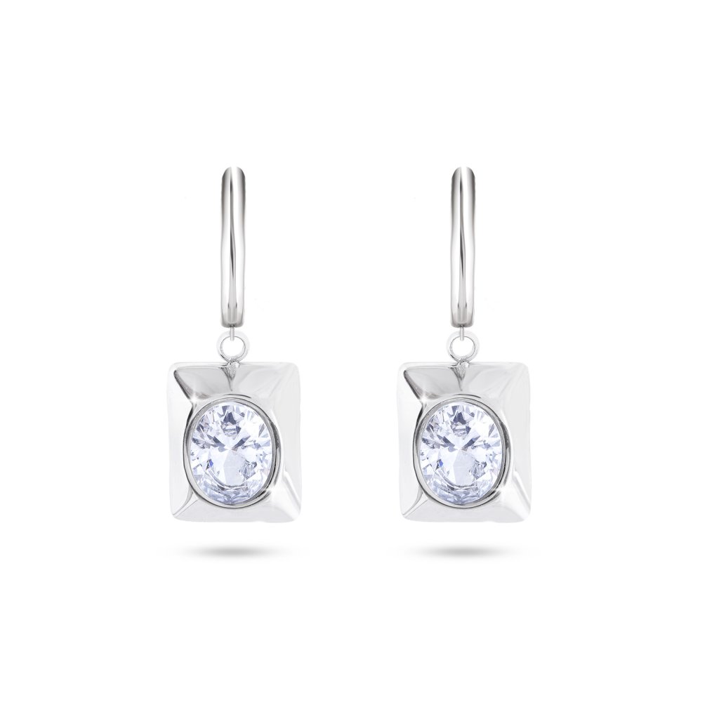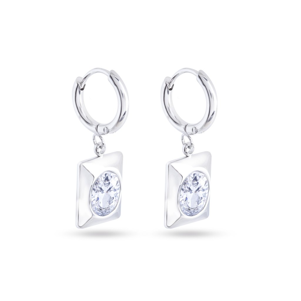 Náušnice z chirurgické oceli, visací obdélníčky s čirým kamínkem zirkonů. Náušnice jsou elegantní ozdobou pro všední dny.
