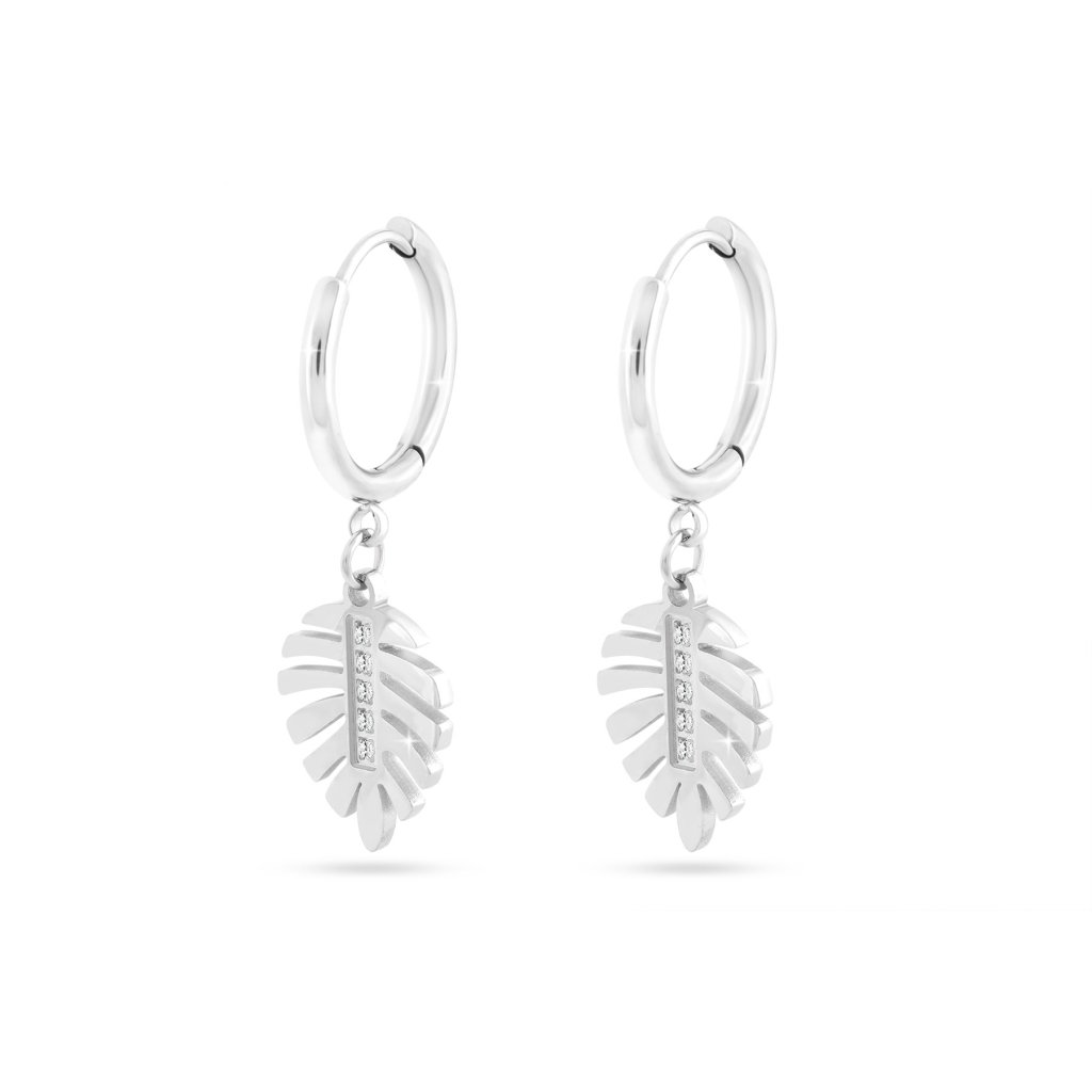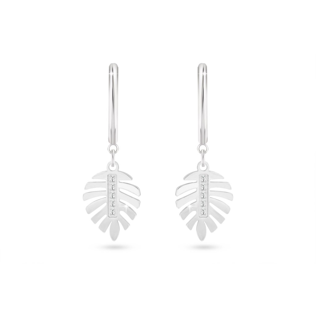 Visací náušnice s přívěskem motivu lístku a ozdobený zirkony je vyrobený z kvalitní nerezové oceli.