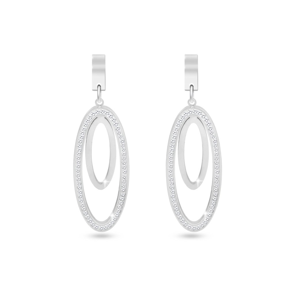 Náušnice z chirurgické oceli, visací spojené oválky se zirkony 1002616