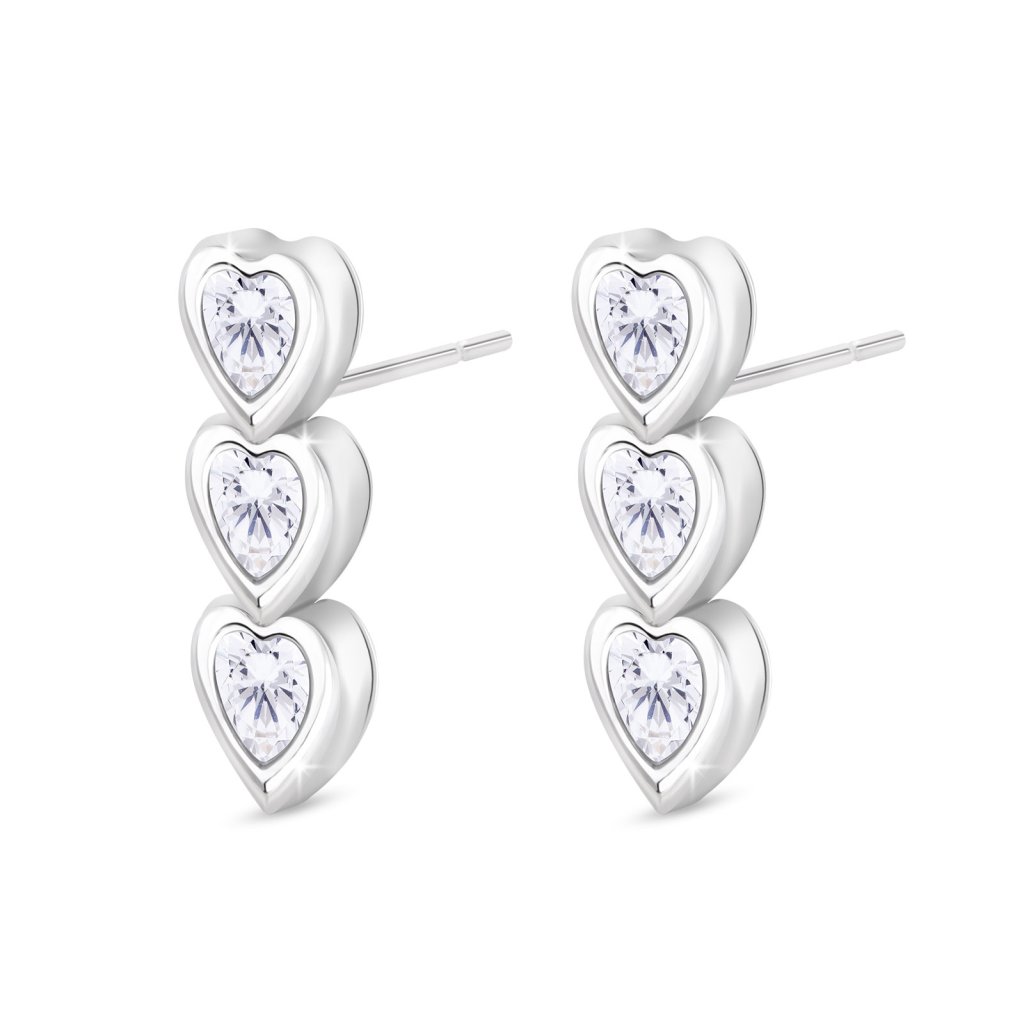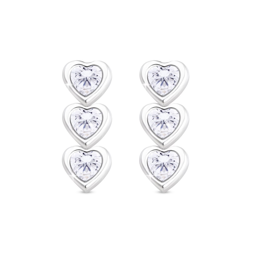 VERONA 2738 Náušnice, visací srdíčka s čirými zirkony
