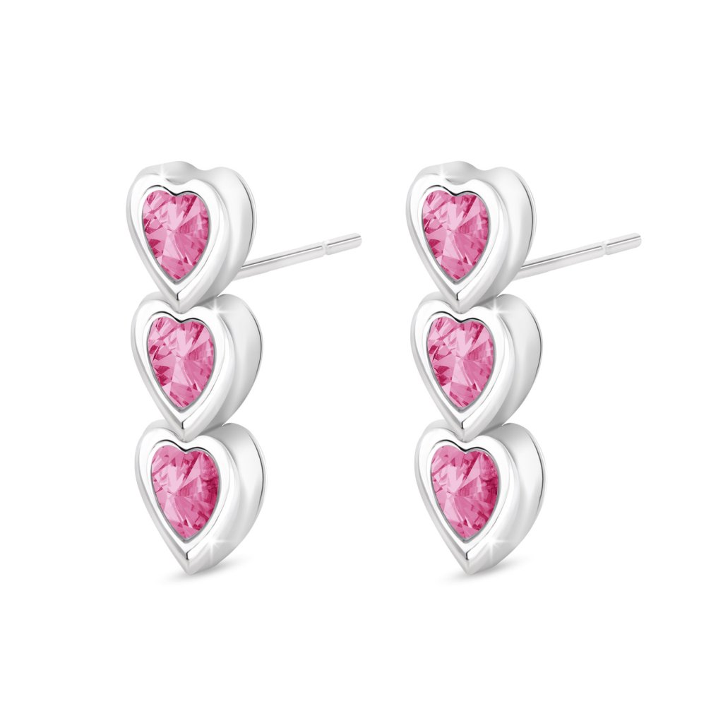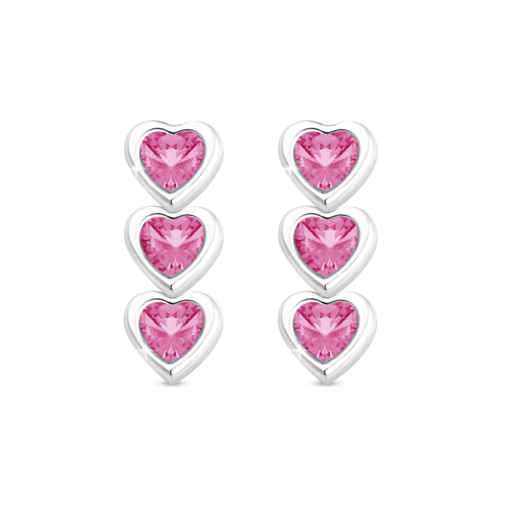 - Náušnice z chirurgické oceli, visací srdíčka s růžovými zirkony.
