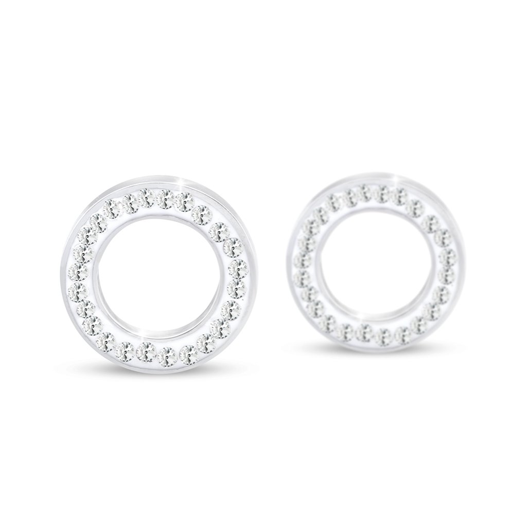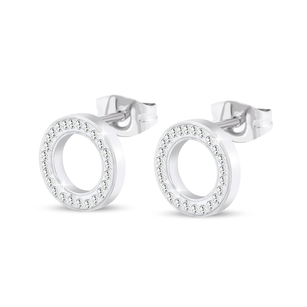 Peckové náušnice zdobené kroužky se zirkony jsou vyrobené z kvalitní nerezové oceli.