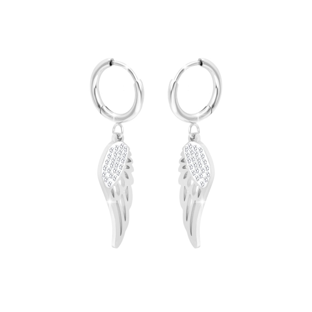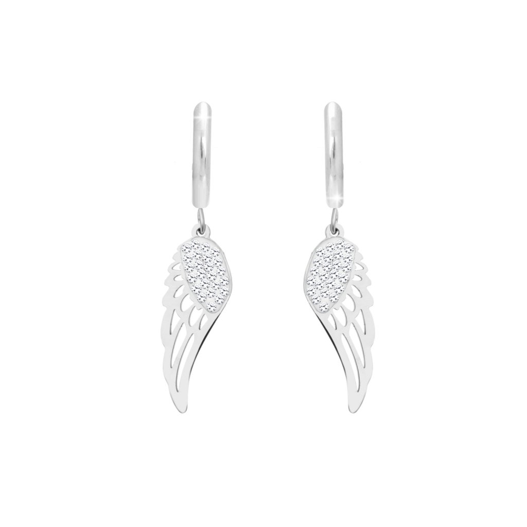 Náušnice z chirurgické oceli kroužek, dlouhé visací křídla se zirkony 1002623