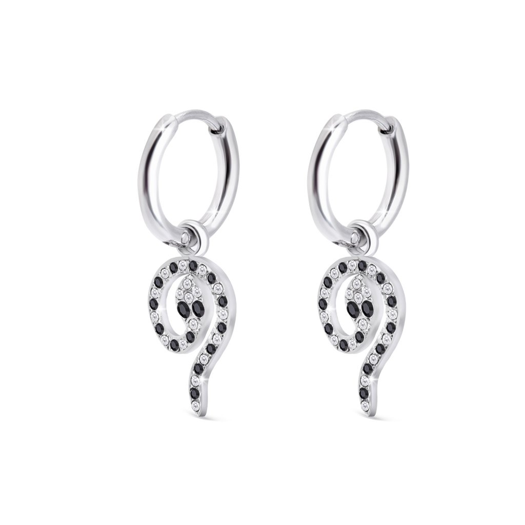 Náušnice z chirurgické oceli kroužek, had ozdobený černými zirkony 1002834-1