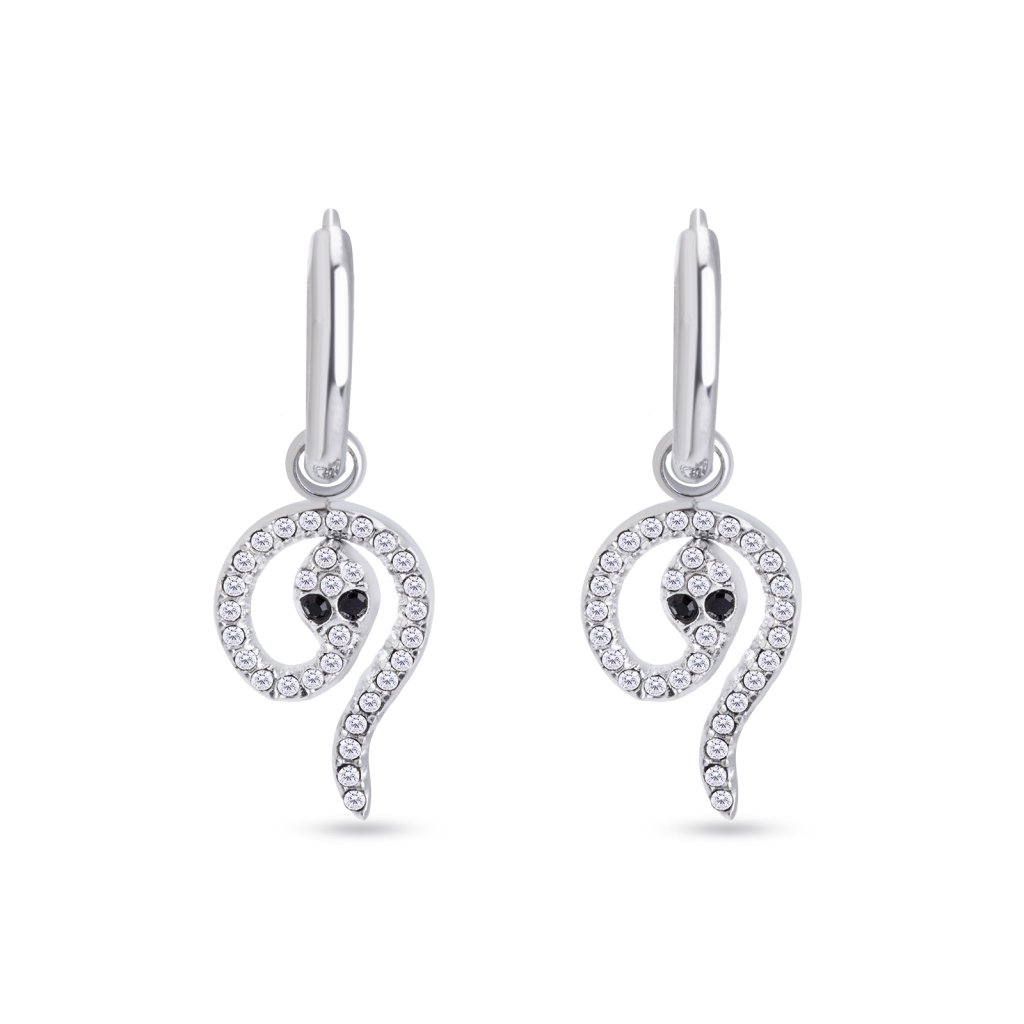 - Náušnice z chirurgické oceli kroužek, had ozdobený čirými zirkony.