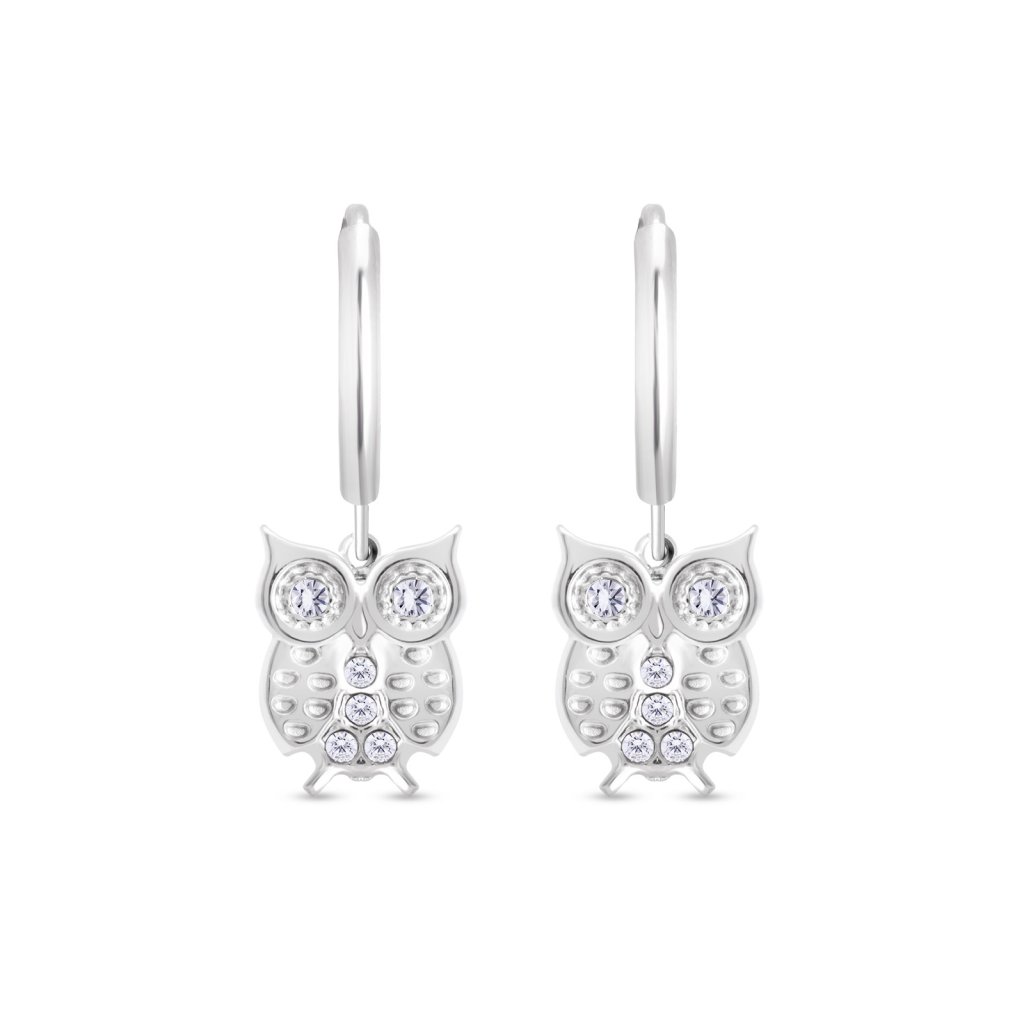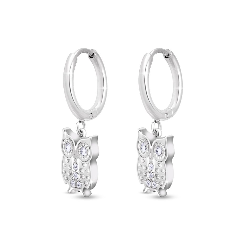 Náušnice z chirurgické oceli kroužek, sovičky ozdobené čirými zirkony 1002769-1