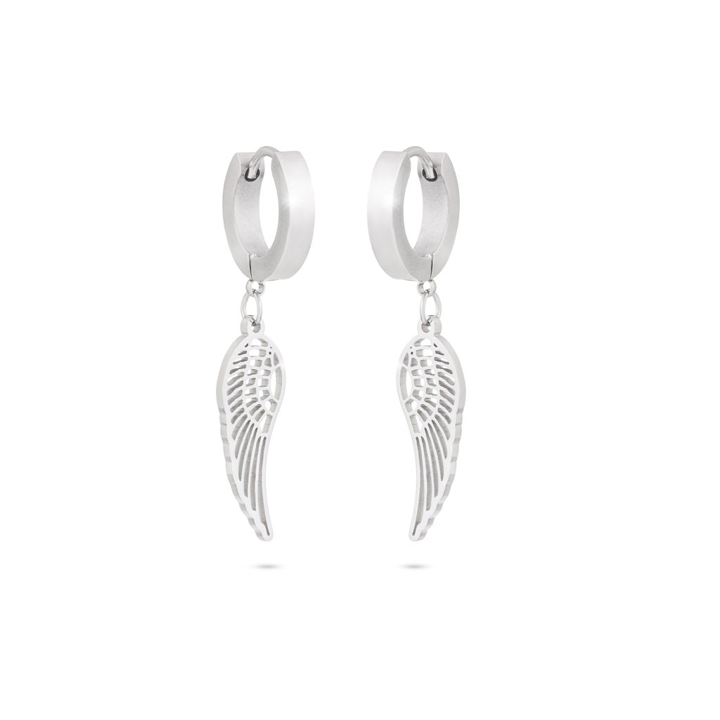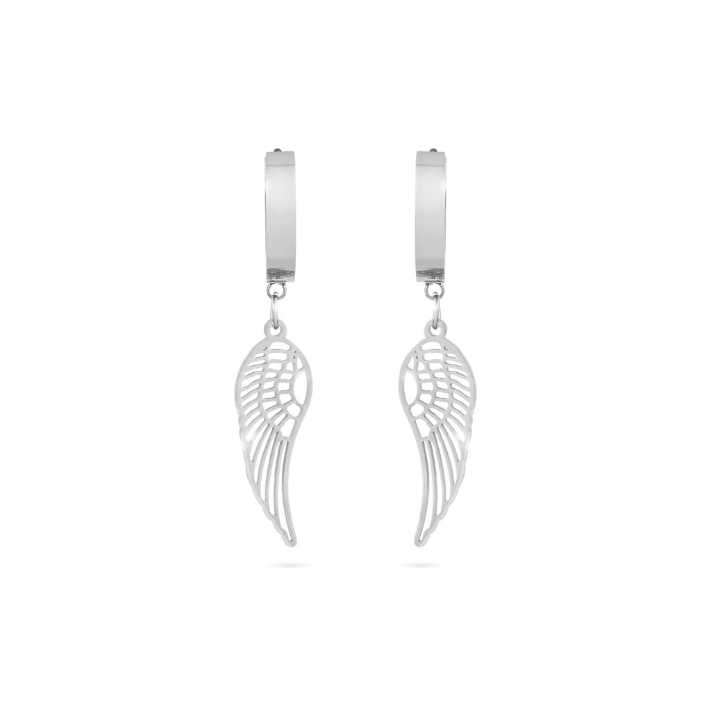 Náušnice z chirurgické oceli kroužek, visací andělské křídla, jsou elegantní ozdobou pro všední i slavnostní den. Jsou zdobené čirým zirkonem nádherně se lesknou. Mají kvalitní zpracování z nerezové oceli. Jejich povrch se třpytí, což jim propůjčuje velice elegantní vzhled. Rozměr náušnic: celková délka 3,5 cm Průměr kroužku: vnitřní průměr 0,9 cm, vnější průměr 1,4 cm Rozměr křídla: výška 2 cm, šířka v nejširším místě 0,8 cmTento výrobek neobsahuje těžké kovy.