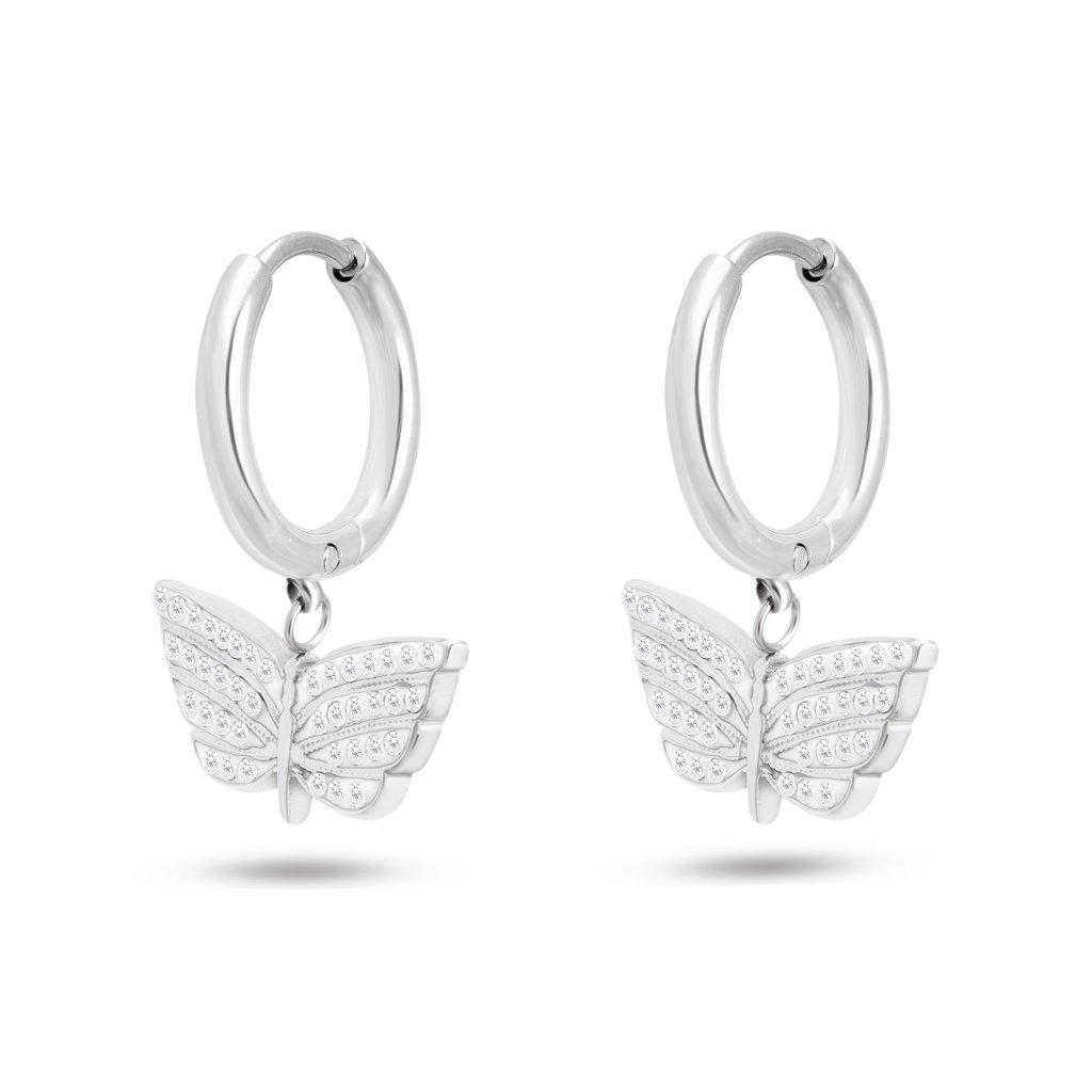 Náušnice z chirurgické oceli kroužek, visací motýl ozdobený zirkony 1002704