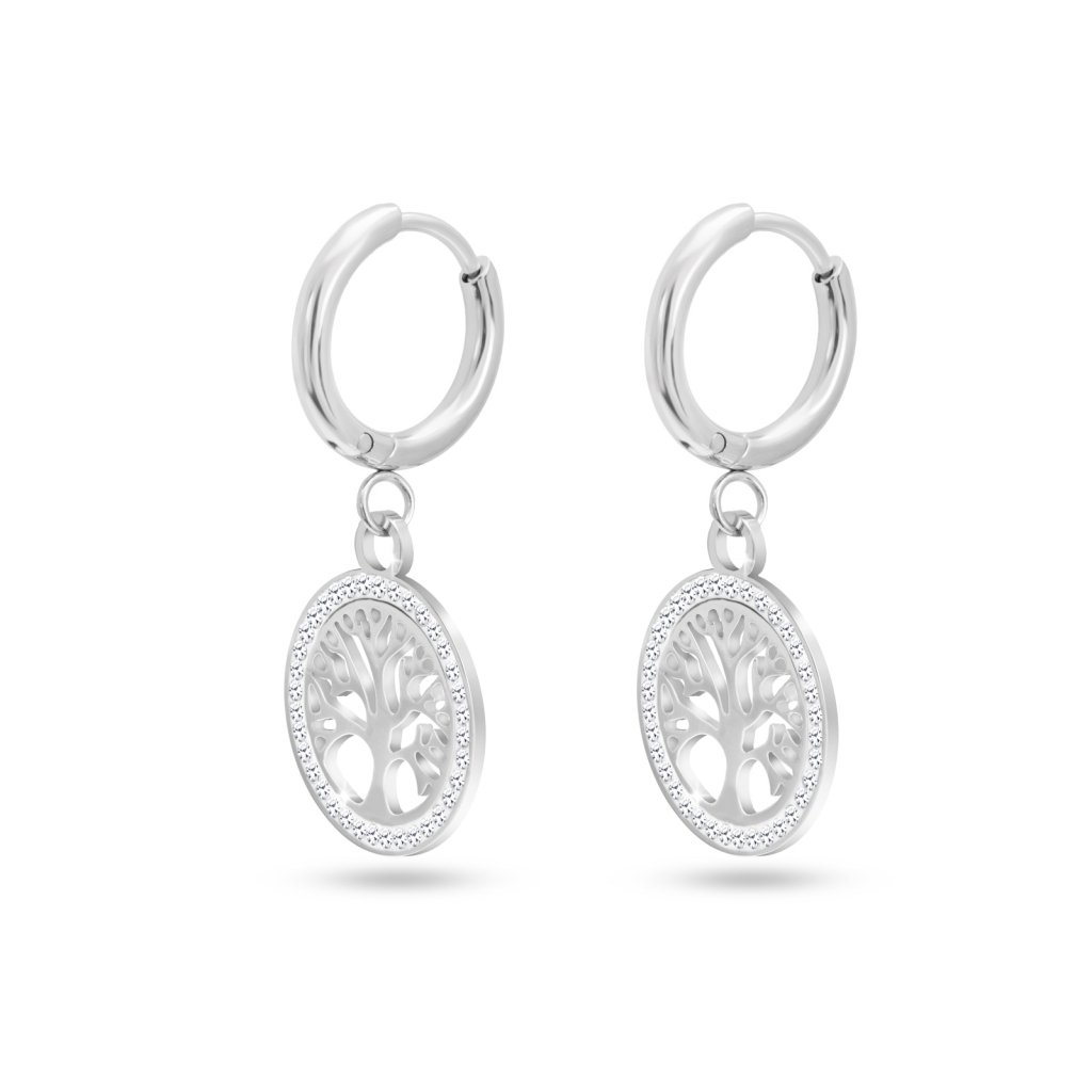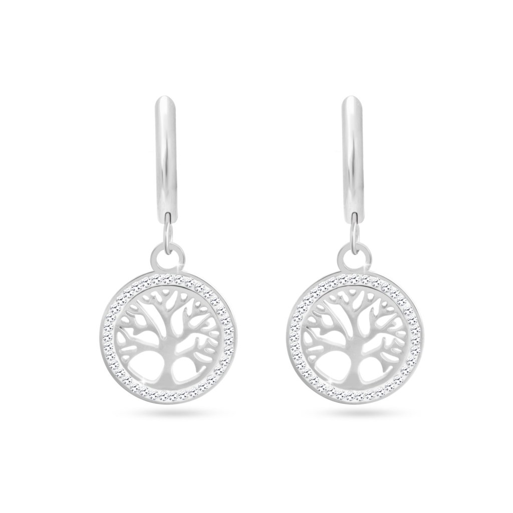 Náušnice z chirurgické oceli kroužek, visací strom života se zirkony 1002618
