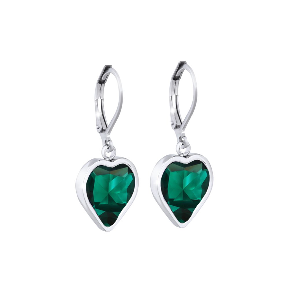 - Náušnice z chirurgické oceli srdce, smaragdový zirkon.