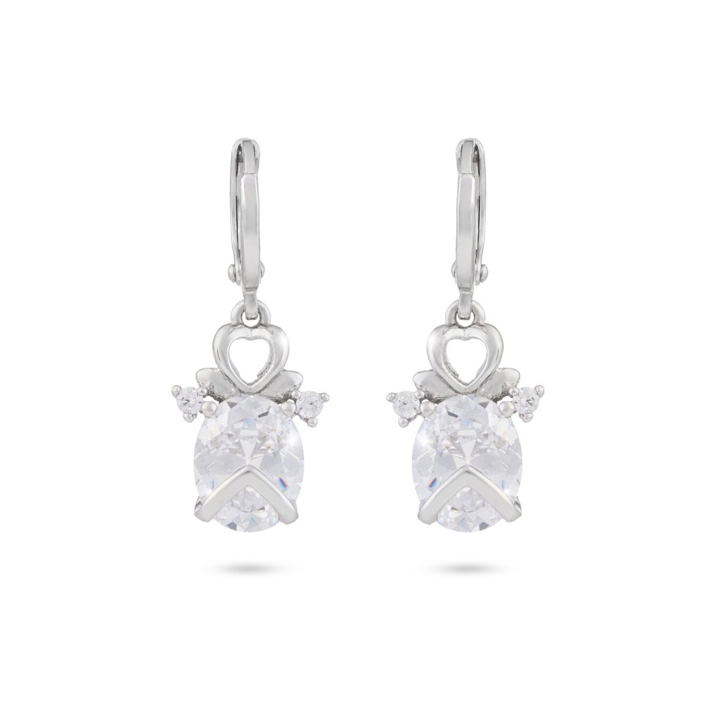 Náušnice z chirurgické oceli visací, andílek se srdíčkovým motivem a zirkony 1002398