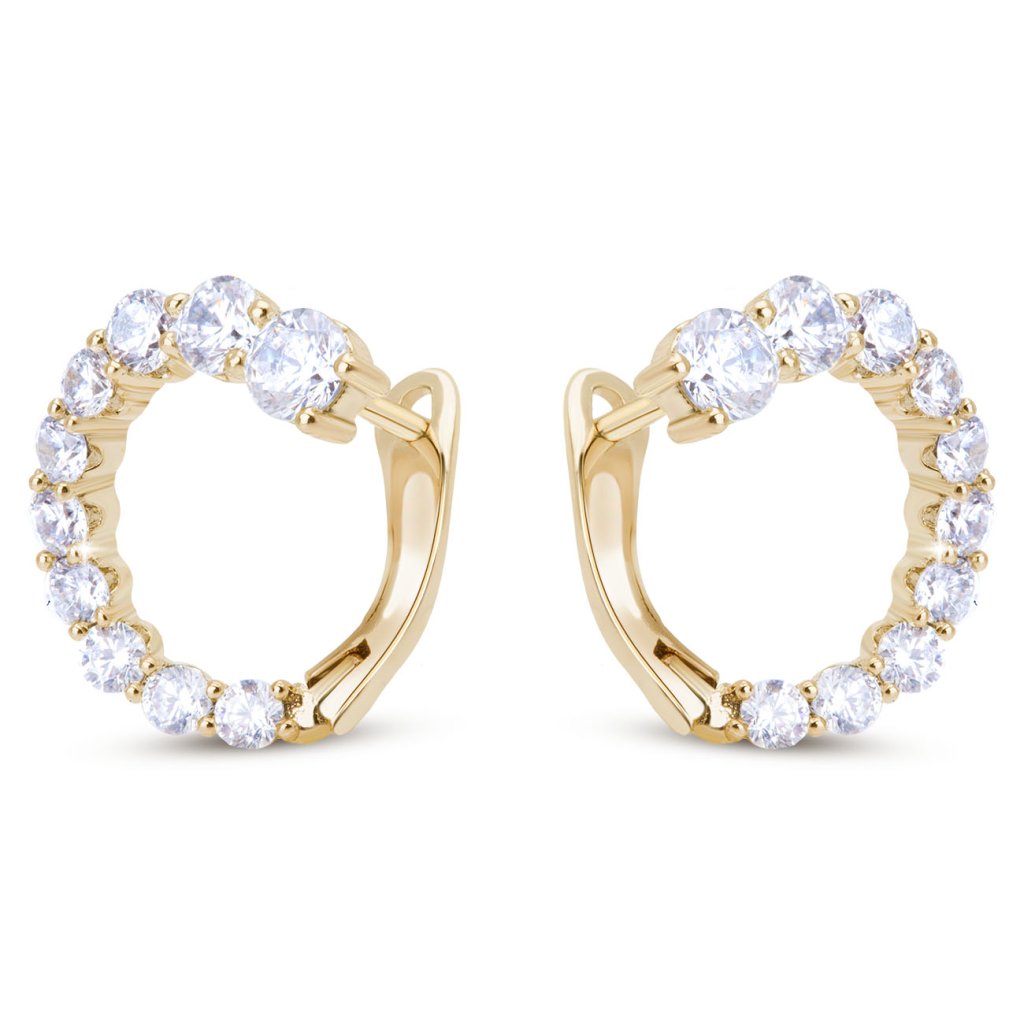 Pozlacené asymetrické náušnice 14k kruhy se zirkony 1003239