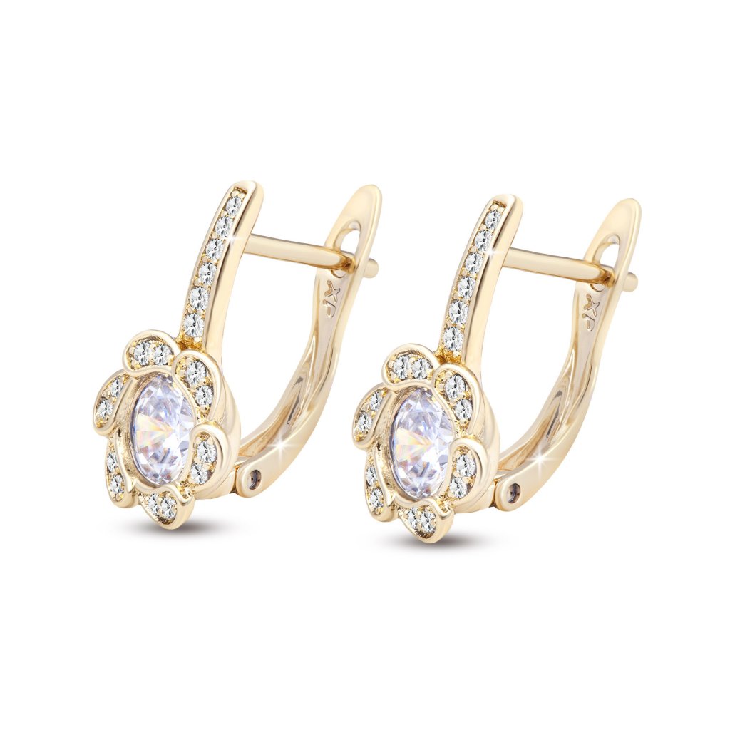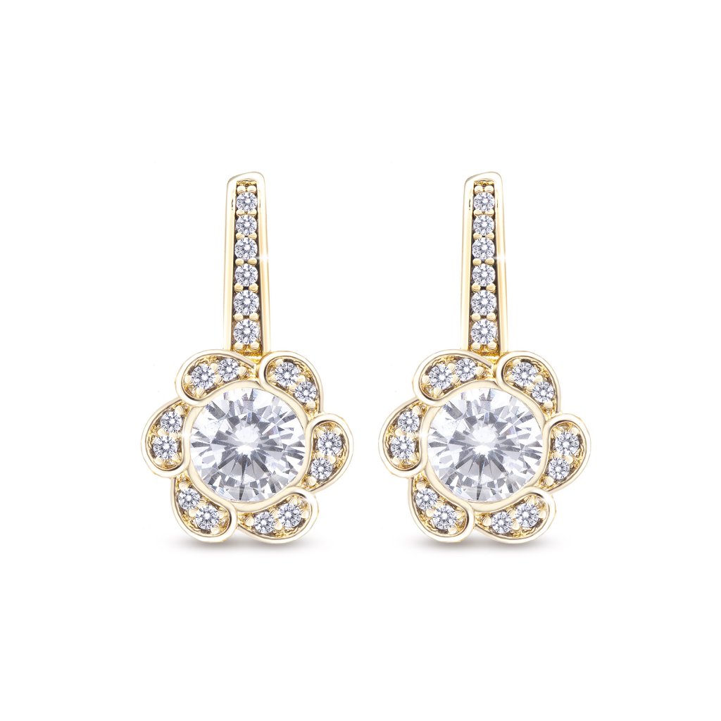 Pozlacené 14 k náušnice květina, která je osázena zirkony. Zapínaní na ruský patent.