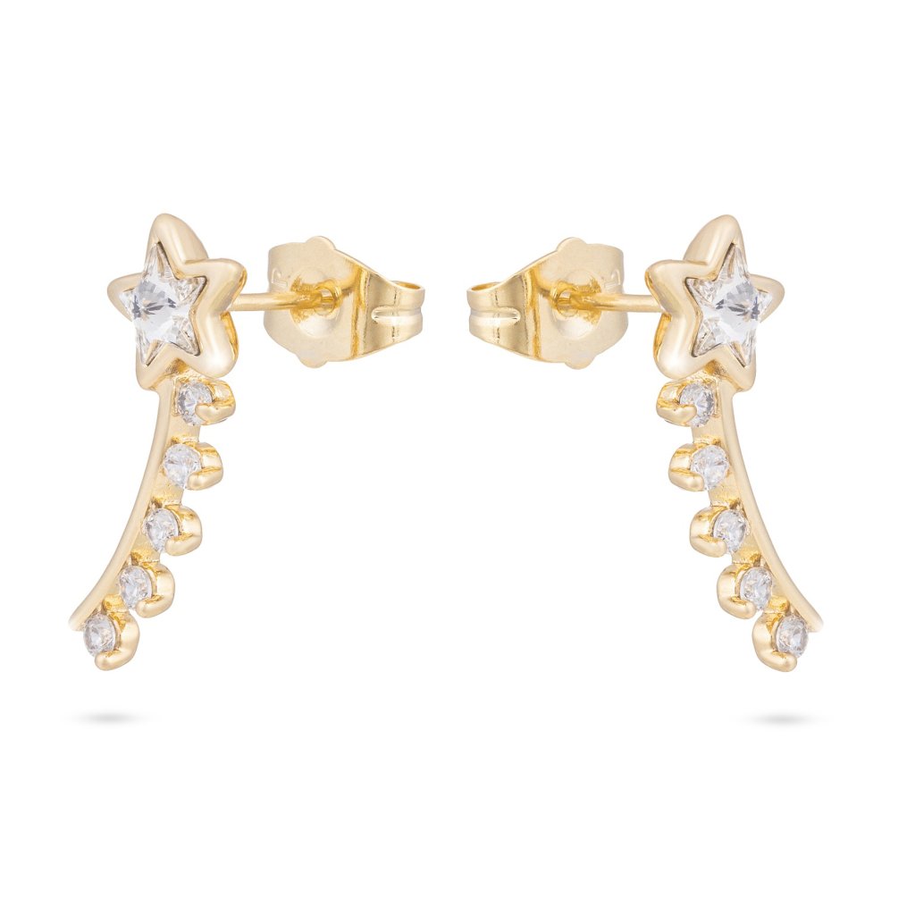Pozlacené náušnice 14 k pecky, podélná padající hvězda se zirkony.