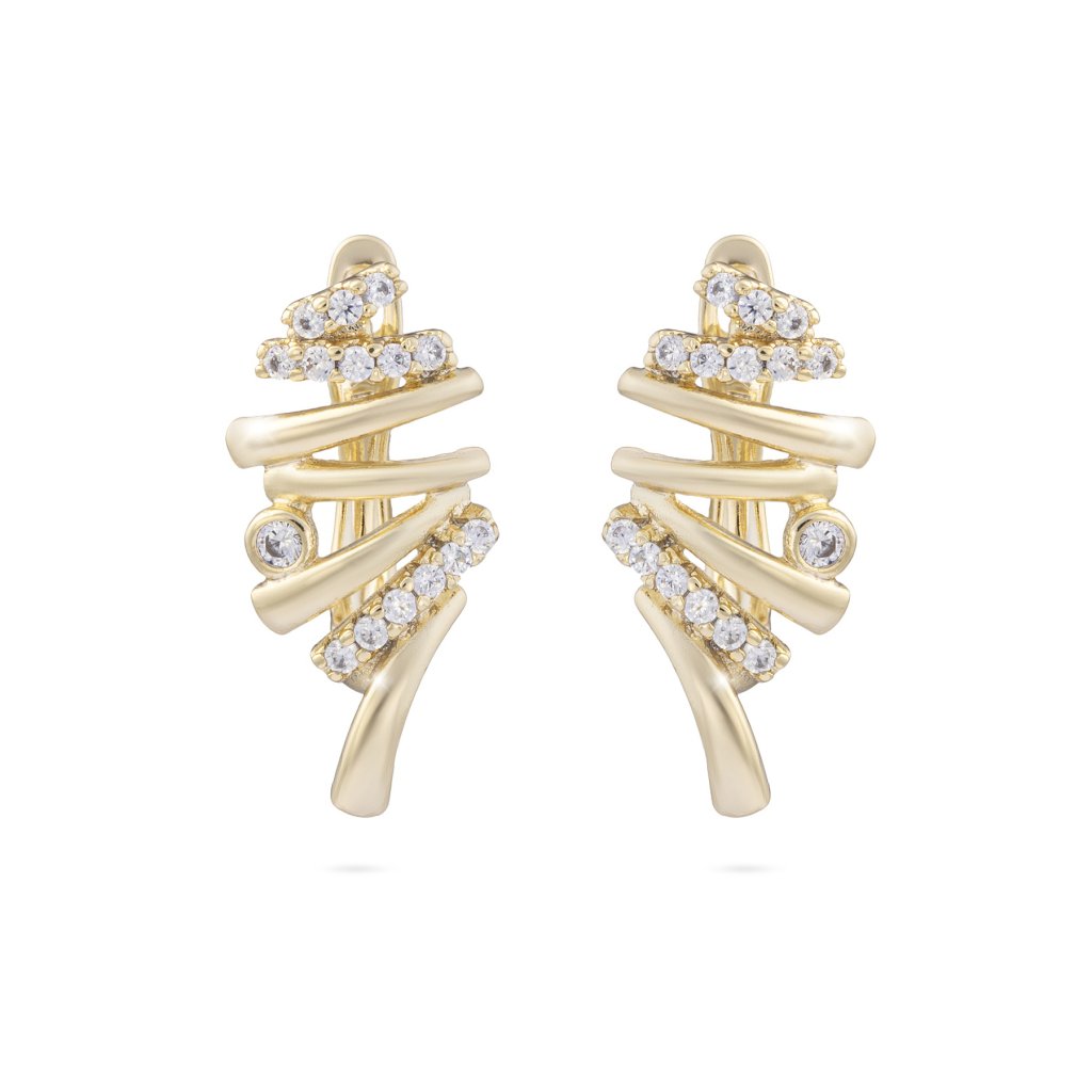- Pozlacené náušnice 14K, asymetrická linie se zirkony.