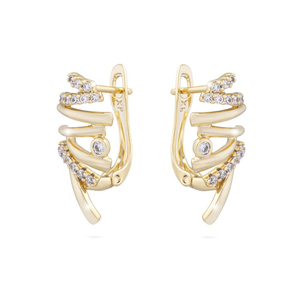 Pozlacené náušnice 14K, asymetrická linie se zirkony 1002809